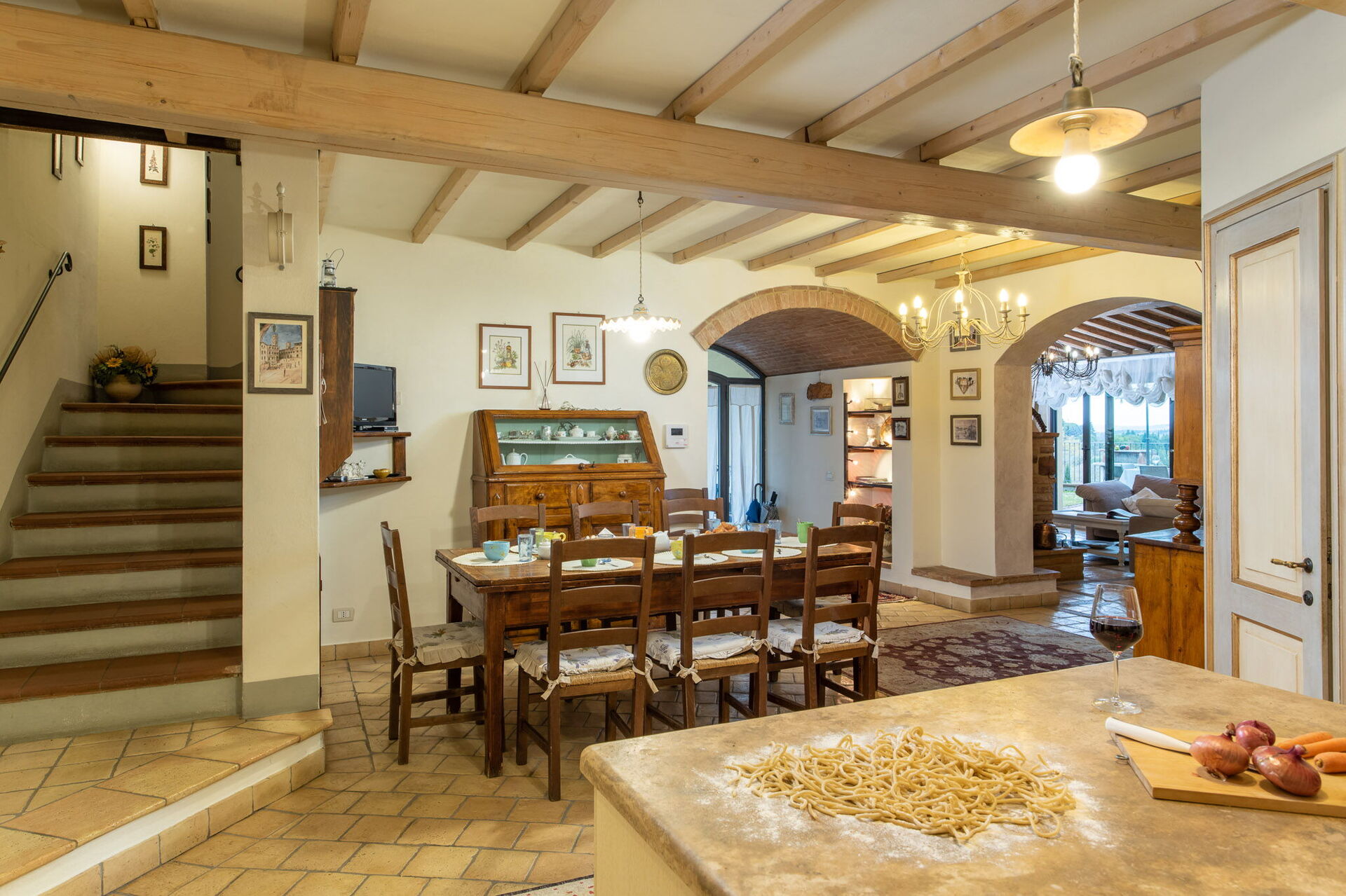 Después de llegar será acogido por el propietario u ama de llaves y encontrará una estupenda propiedad limpia y acogedora with views of las colinas ideal para unas vacaciones relajadas en Toscana. Independientemente de como pasa sus días - museos, shopping, excursiones o simplemente visitando y descubriendo el paisaje, cuando llega a casa puede descansar con amigos y familia cerca de la piscina para un final de día perfecto en Toscana. Para su placer, afuera hay barbacoa y jacuzzi. Si le gusta cocinar para su familia y amigos hay una cocina bien equipada incluso máquina de café, microondas, tostador, estufa y nevera, así como , muchas vajillas y cubiertos para hasta 14 personas. Si prefiere comer afuera 'al fresco', hay la veranda, un espacio bien equipado donde puede disfrutar el buen clima comiendo afuera.