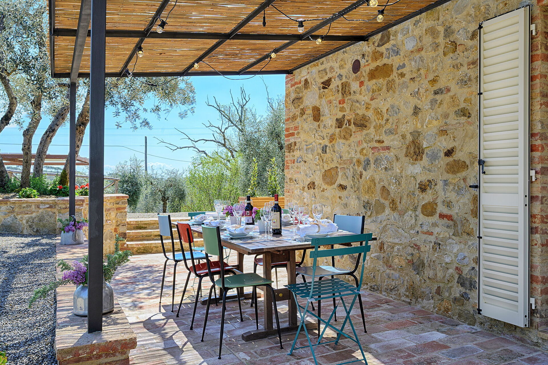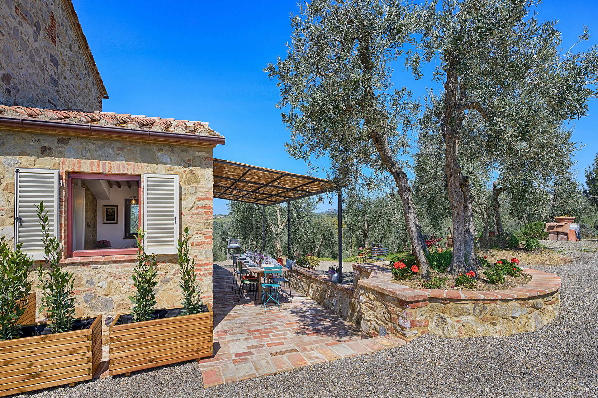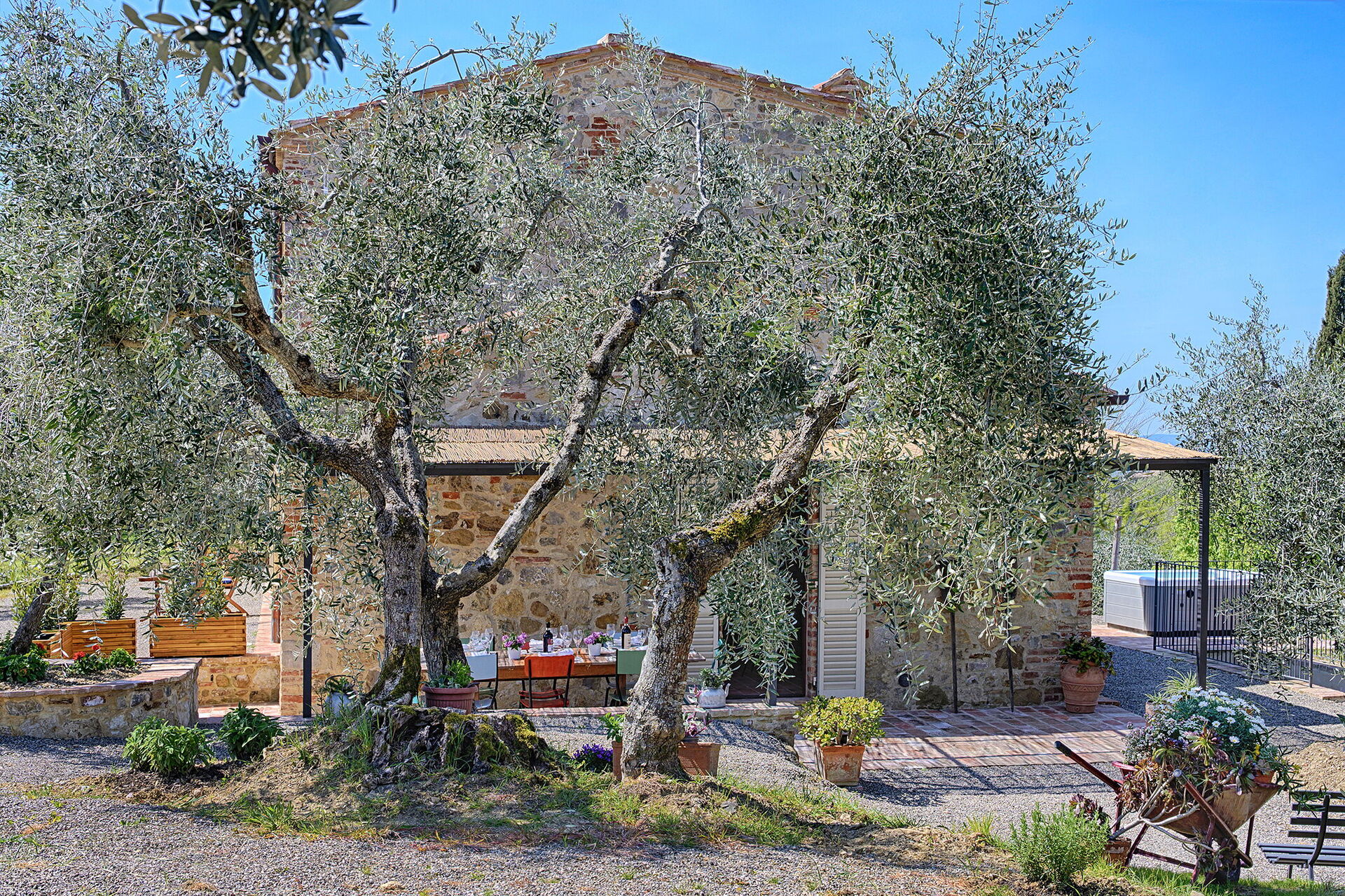 Después de llegar a Marielena Authentic Chianti Retreat: Panoramic Vie encontraras una hermosa propiedad limpia y acogedora con vista sobre las colinas perfecta para unas vacaciones relajantes en Toscana. Para su goce encontrará jardín privado donde puede descansar gustandose un buen refresco después un día pasado compras.Uno de los beneficios de estar en una casa de vacaciones sino que en hoteles, es la posibilidad de relajarse tras un largo día de visitas con la familia y los amigos. Al anochecer sigue disfrutando con una buena comida y un buen vino local. Para su placer, afuera hay jacuzzi, porche y parrilla. Comer con familia y amigos es un aspecto de gran importancia en la cultura toscana. Aproveche de una cocina bien equipada para preparar comidas utilizando productos locales durante sus vacaciones. La cocina incluye cafetera, microondas, toaster, estufas y nevera, además de, muchas vajillas y cubiertos para hasta ocho personas. Come 'al fresco' como un local, la veranda es el lugar ideal para disfrutar de la comida, la compañía y el hermoso clima toscano.