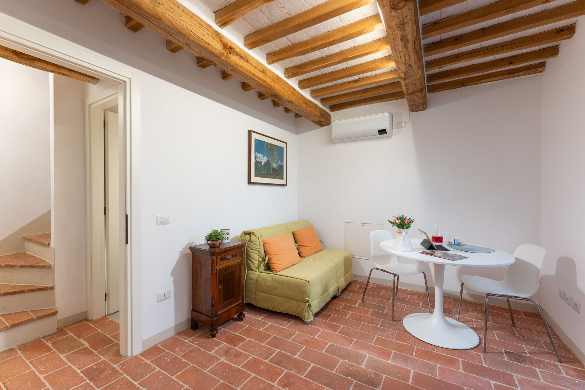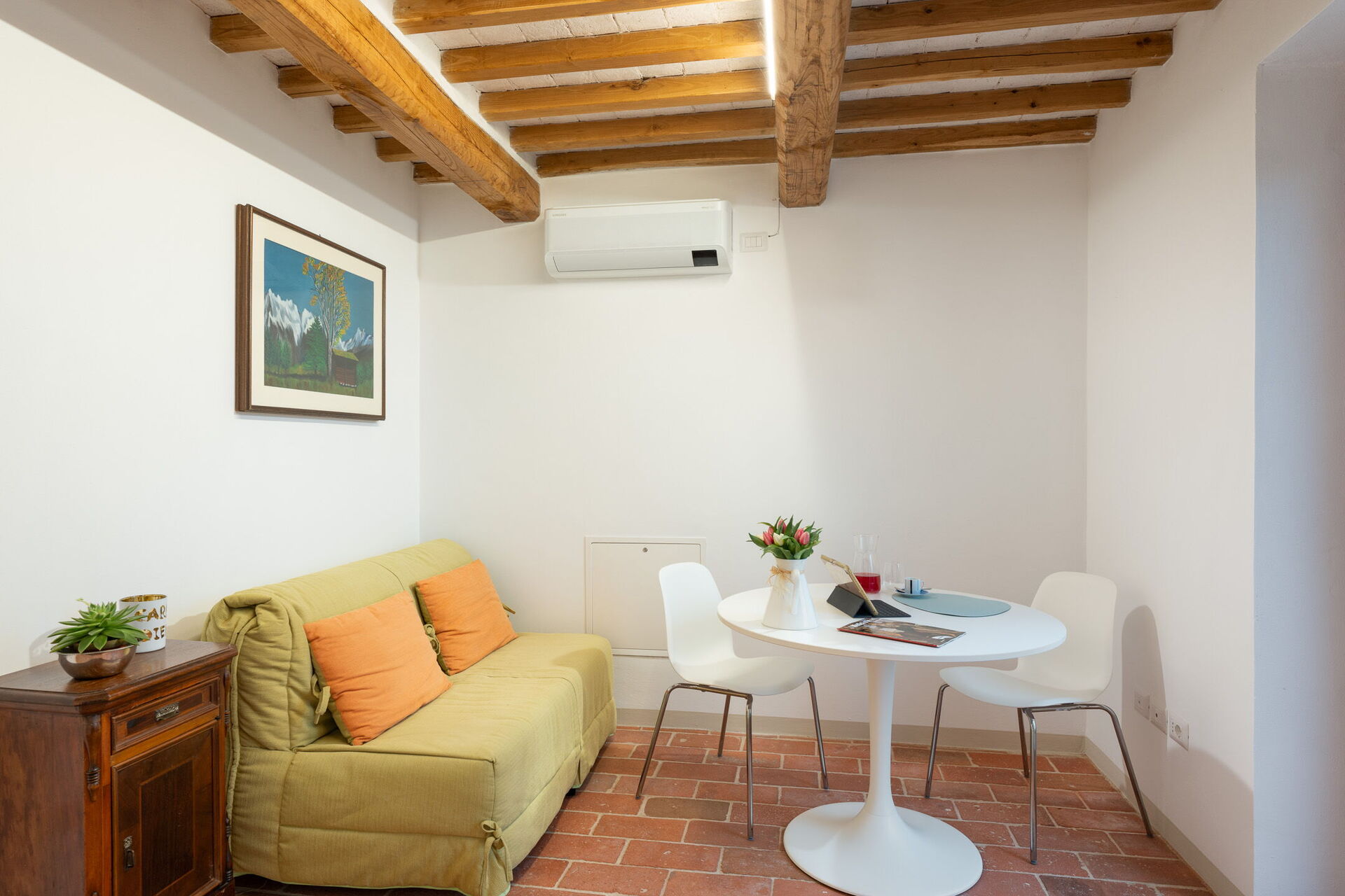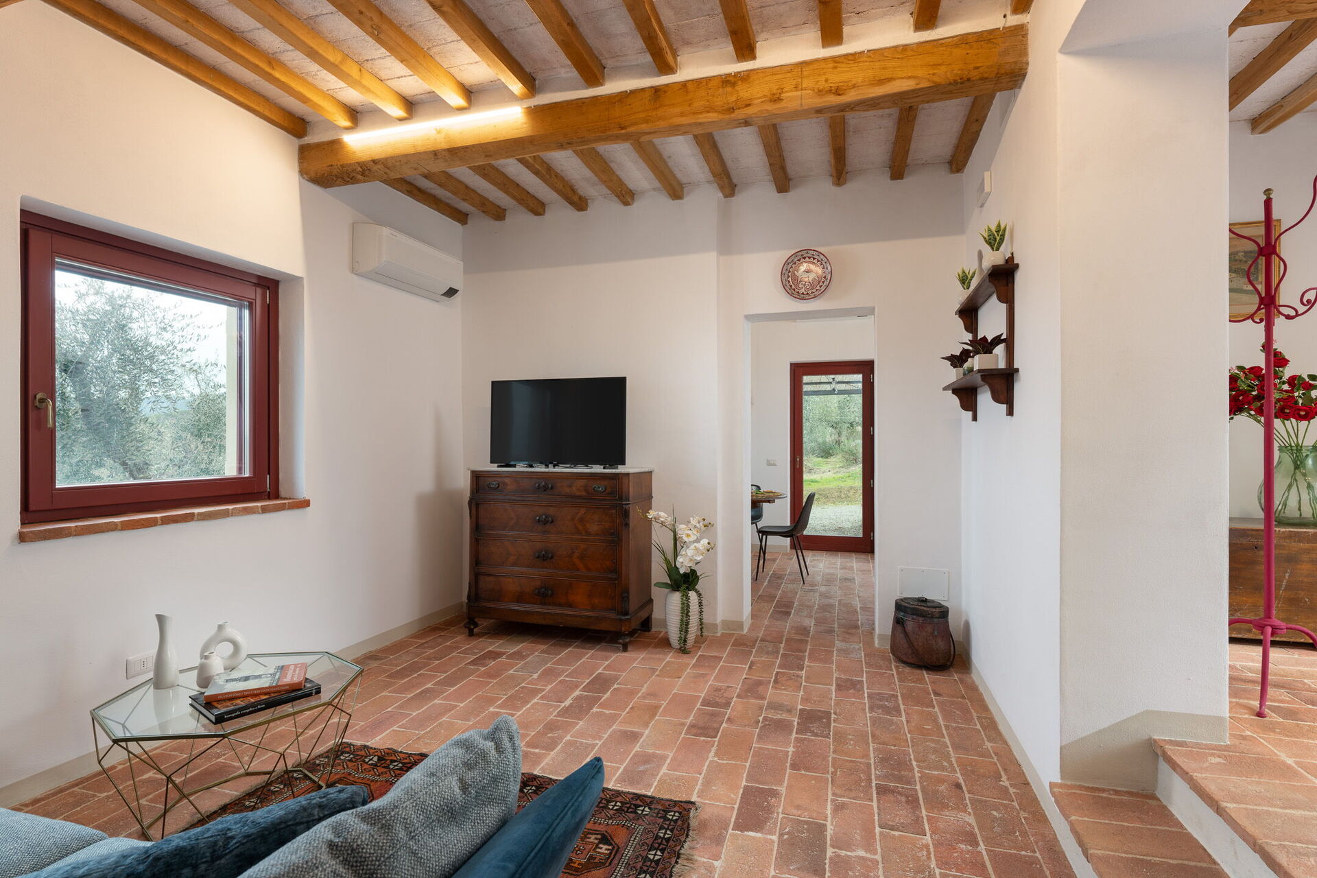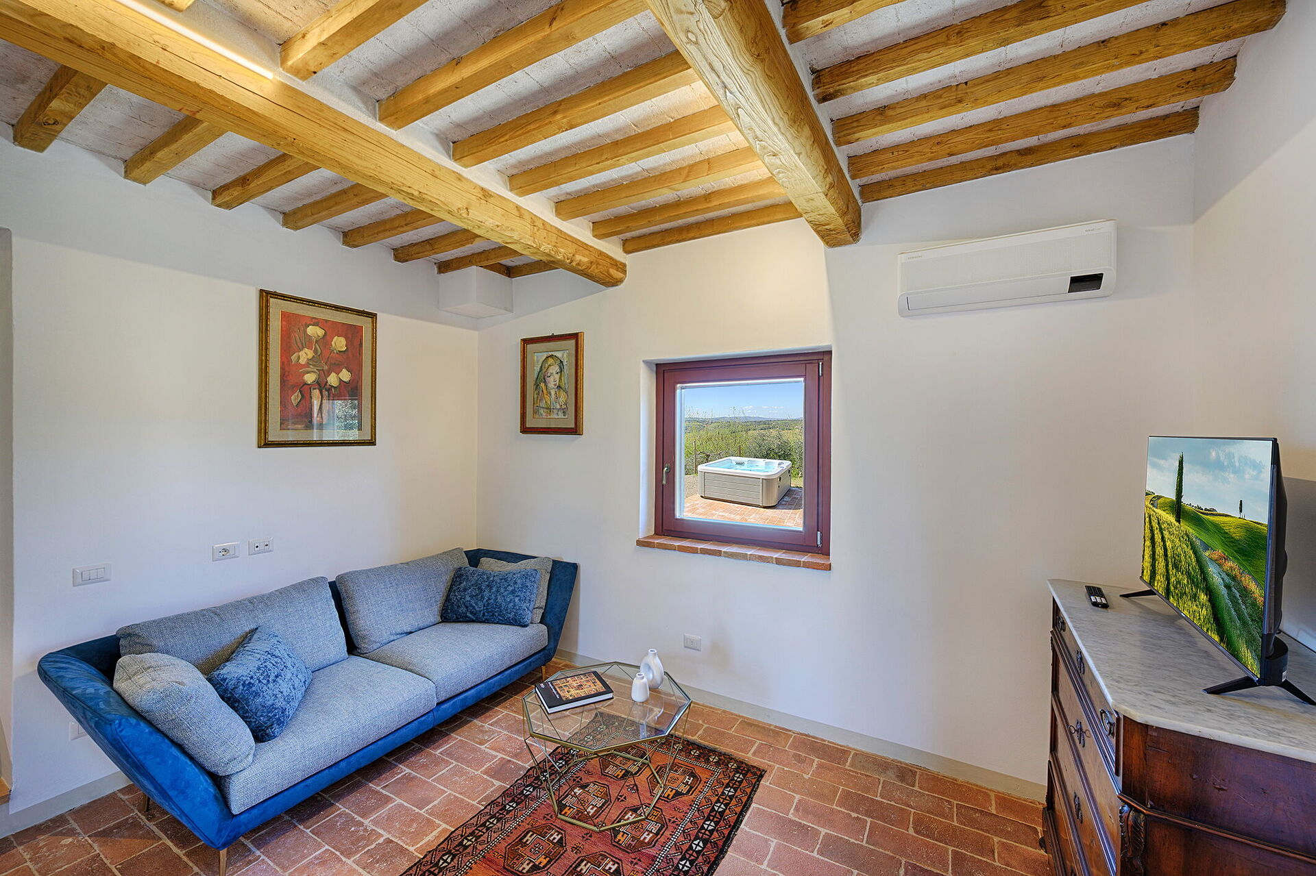 Salón: sofa (gente: 4), aire acondicionado, televisión.