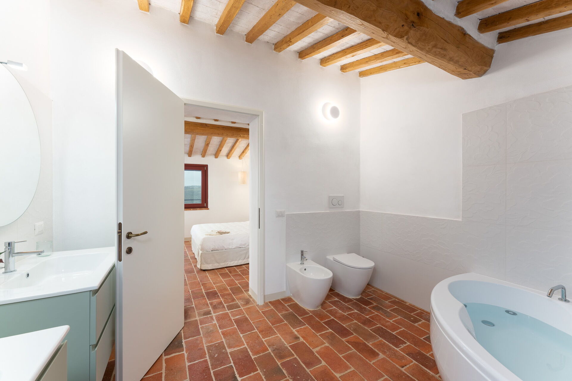Habitación con baño 1: cama doble, WIFI internet, aire acondicionado, jacuzzi, lavabo, baño, bidé, secador.