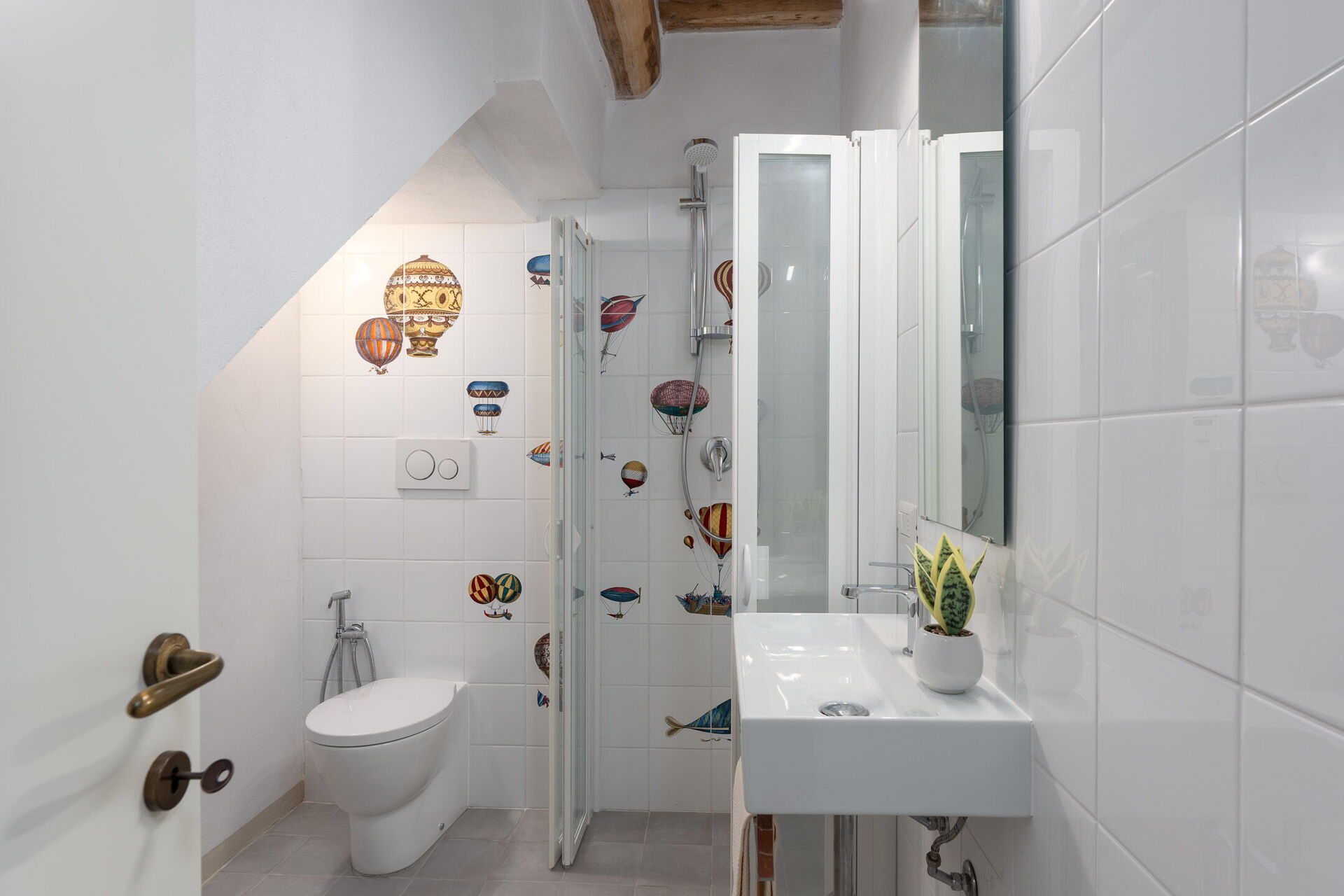 Baño: lavabo, baño, bidé, ducha, secador, mosquitero.
