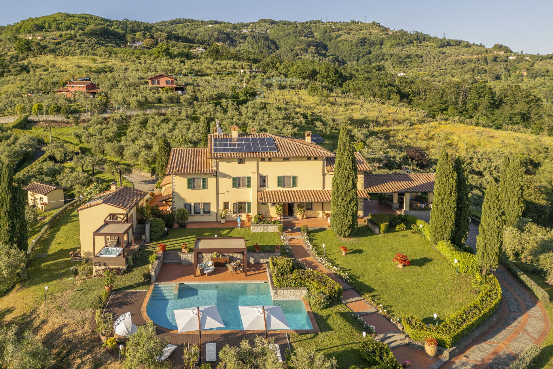 La mayoría de la gente de vacaciones quiere visitar a ciudades y pueblos cercanos, para su información esta es una lista de lugares conocidos con distancias (en linea recta) en coche de la propiedad: Lucca 34 km, Florencia 54 km, Viareggio 55 km, Pisa 56 km y Forte Dei Marmi 62 km.