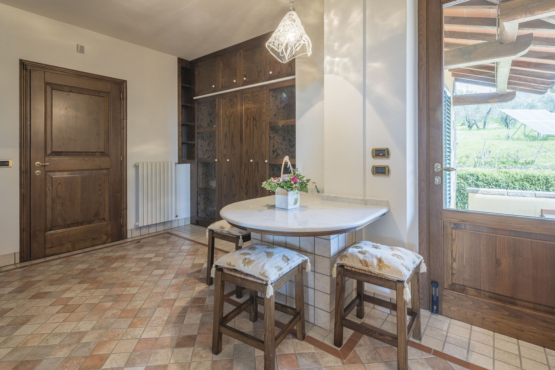 Tras llegar será bienvenido por el propietario u ama de llaves y encontrará una hermosa propiedad limpia y acogedora with views of las colinas and ciudad ideal para unas vacaciones tranquilas en Toscana. Para su goce encontrará una piscina privada donde puede relajarse disfutando de un buen refresco después de un día pasado haciendo compras. Para su placer, afuera hay parrilla, patio y bañera de hidromasaje. Cenar con familia y amigos es un aspecto de gran importancia en la cultura toscana. Aproveche de una cocina bien equipada para preparar comidas utilizando productos locales durante sus vacaciones. La cocina incluye cafetera, microondas, toaster, estufas y nevera, además de, muchas vajillas y cubiertos para hasta 14 personas.