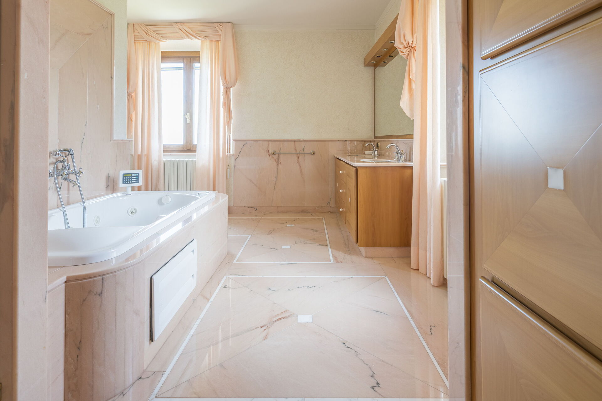 Habitación con baño 1: cama doble, sofá cama, WIFI internet, aire acondicionado, televisión, jacuzzi, lavabo, baño, bidé, secador.