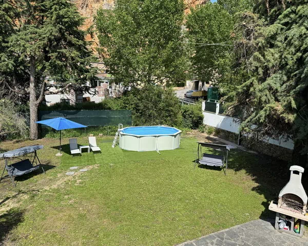 Jardín: piscina (ancho: 3.6m, longitud: 4.9m, profundidad: 1.2m), barbacoa, comer al aire libre, mesa de comedor, mobiliario de jardin, cercado.