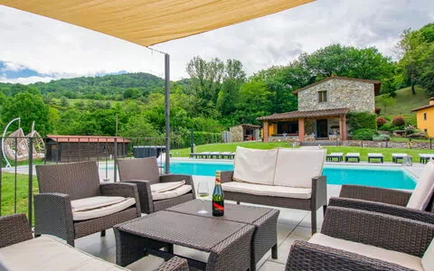 Casa rural "La Ginepraia", 162 m s.n. m., agradable, confortable de 3 plantas, individual del año 2006, rodeada de árboles y prados. En las afueras de la localidad, a 500 m del centro de Dicomano, lugar tranquilo, soleado, en el campo. Privado: terreno 4 ha (vallada), plantas y flores, jardín natural 500 m2 (vallada), piscina (12 x 6 m, 140 - 140 cm de profundidad, Disponible por temporada: 01.May. - 30.Sep.) con agua de mar. Ducha exterior, piscina de hidromasaje, muebles de jardín, barbacoa, mantenimiento de la piscina a través del propietario/jardinero. En el inmueble: gimnasio. Aparcamiento (para 6 coches). Tienda de comestibles 500 m, supermercado 1 km, centro comercial 2 km, bar 500 m, parada autobús 5 m, estación de tren "Dicomano" 500 m, lago "Bilancino" 30 km. Atracciones en los alrededores: Firenze 40 km, Volterra 110 km, Siena 100 km. A tener en cuenta: el propietario vive en el mismo terreno.