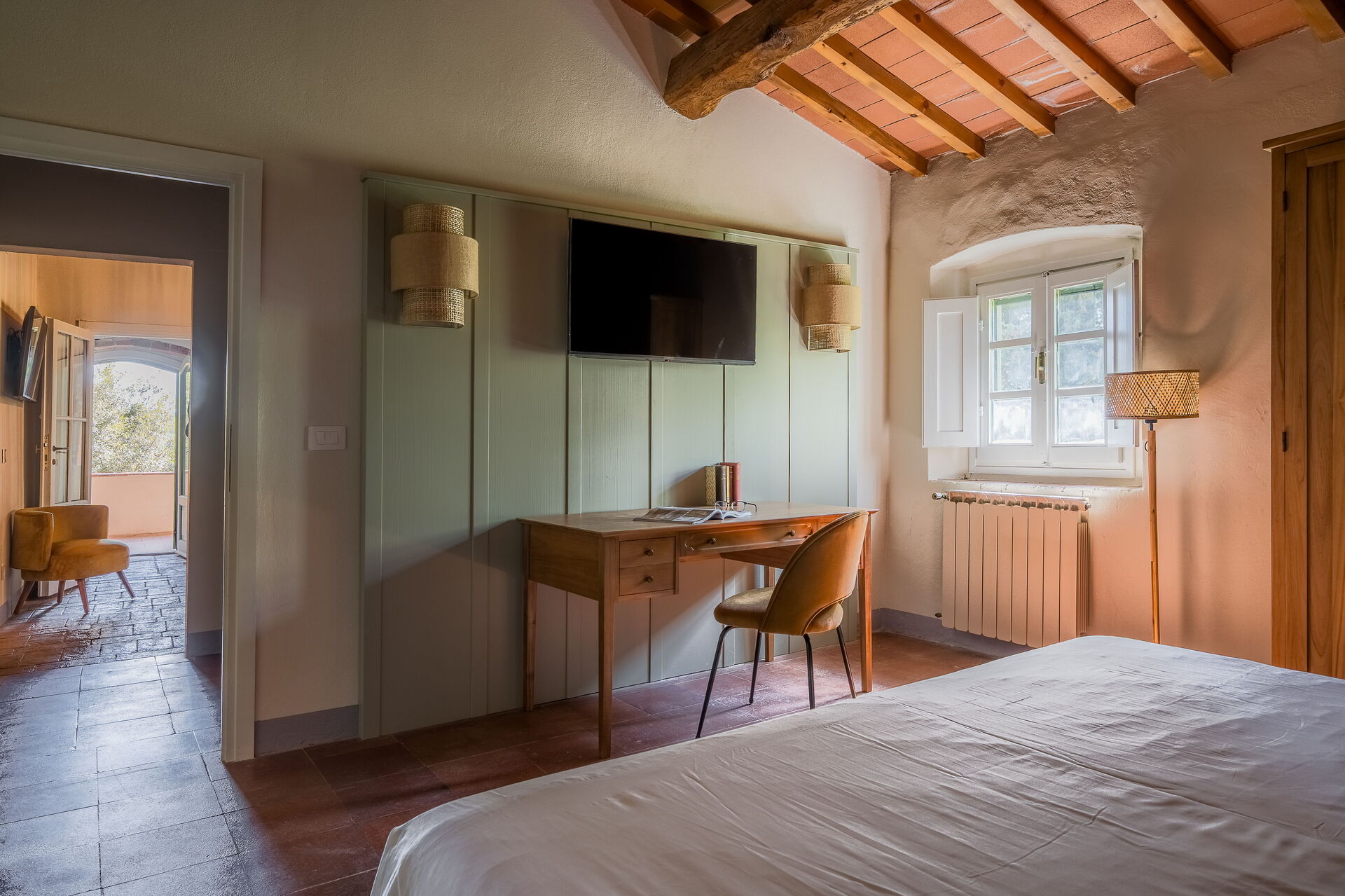 Relais Badia a Passignano - Appartamento Merlot (51 m2) es un piso de dos-habitaciones con 2 baños construido sobre 1 nivel y puede acoger cómodamente hasta cuatro personas.
