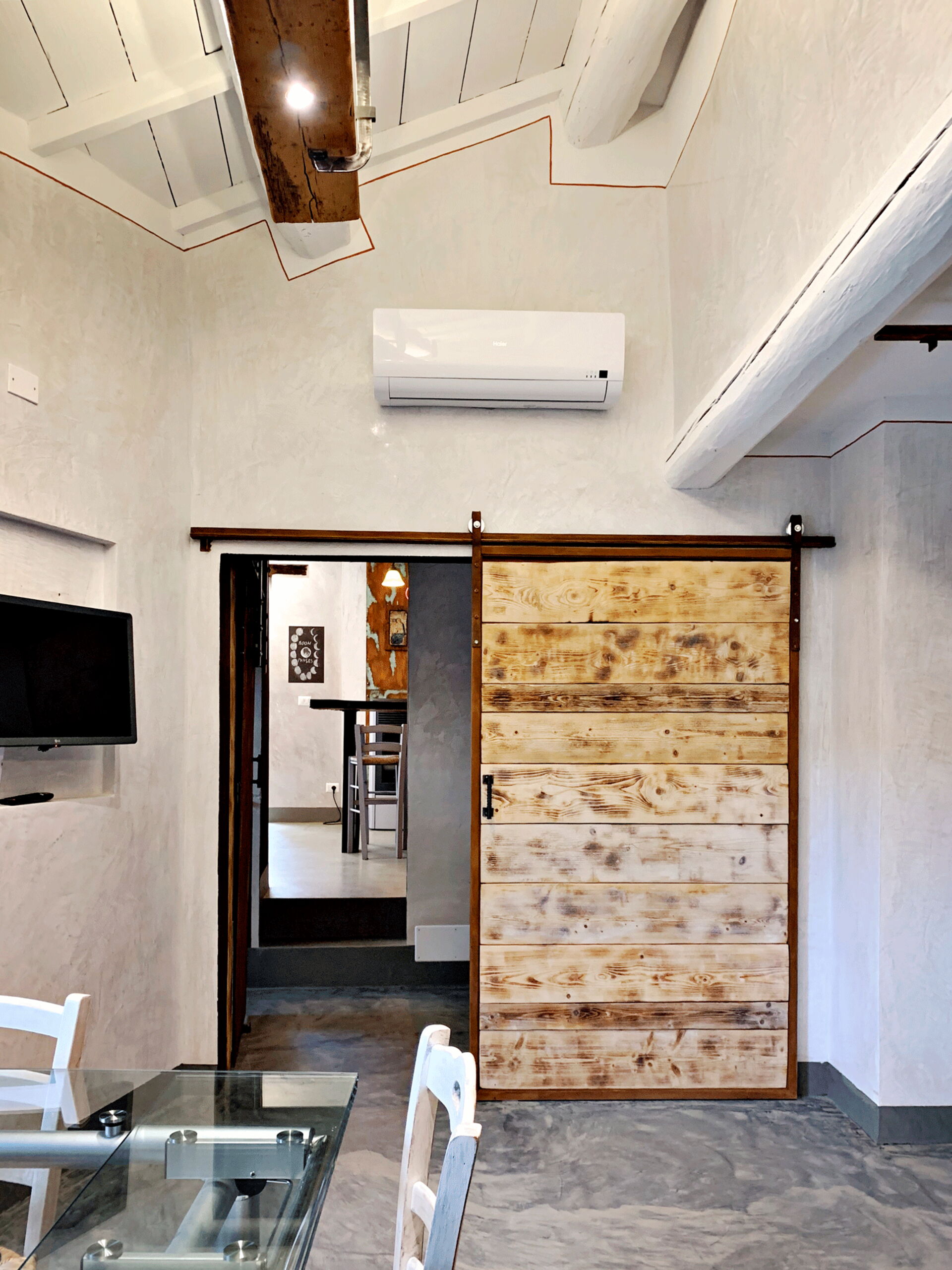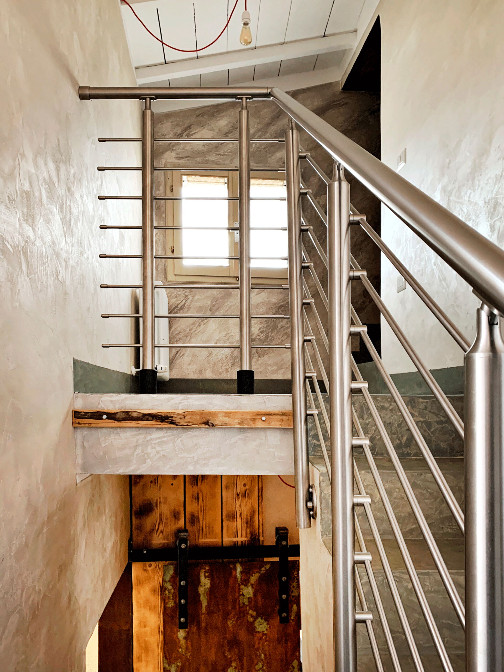 A staircase leads to the upper floor, where the master bedroom overlooking the village. Continuing a few steps leads to the romantic little terrace, perfect for enjoying summer evenings.