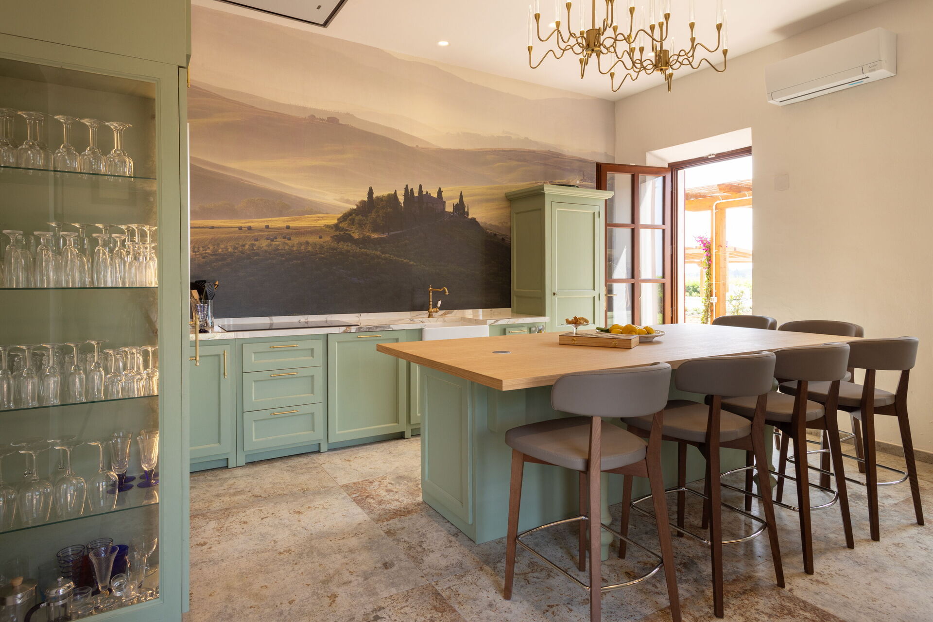 Cocina (40 m2): mesa de comedor, lavavajillas, frigorífico, congelador, microondas, cocina de gas, horno, tostadora, máquina de café italiana, WIFI internet, aire acondicionado, seis sillas altas, detector de humo, acceso al jardín, acceso a la terraza.