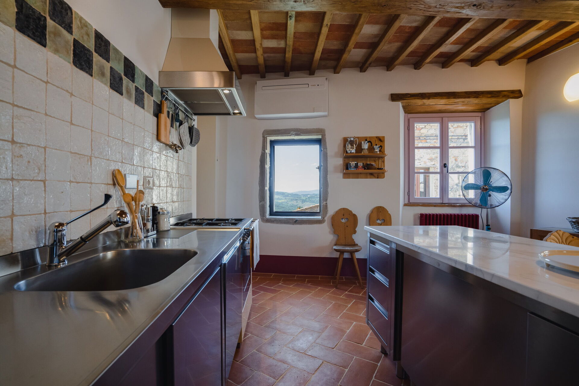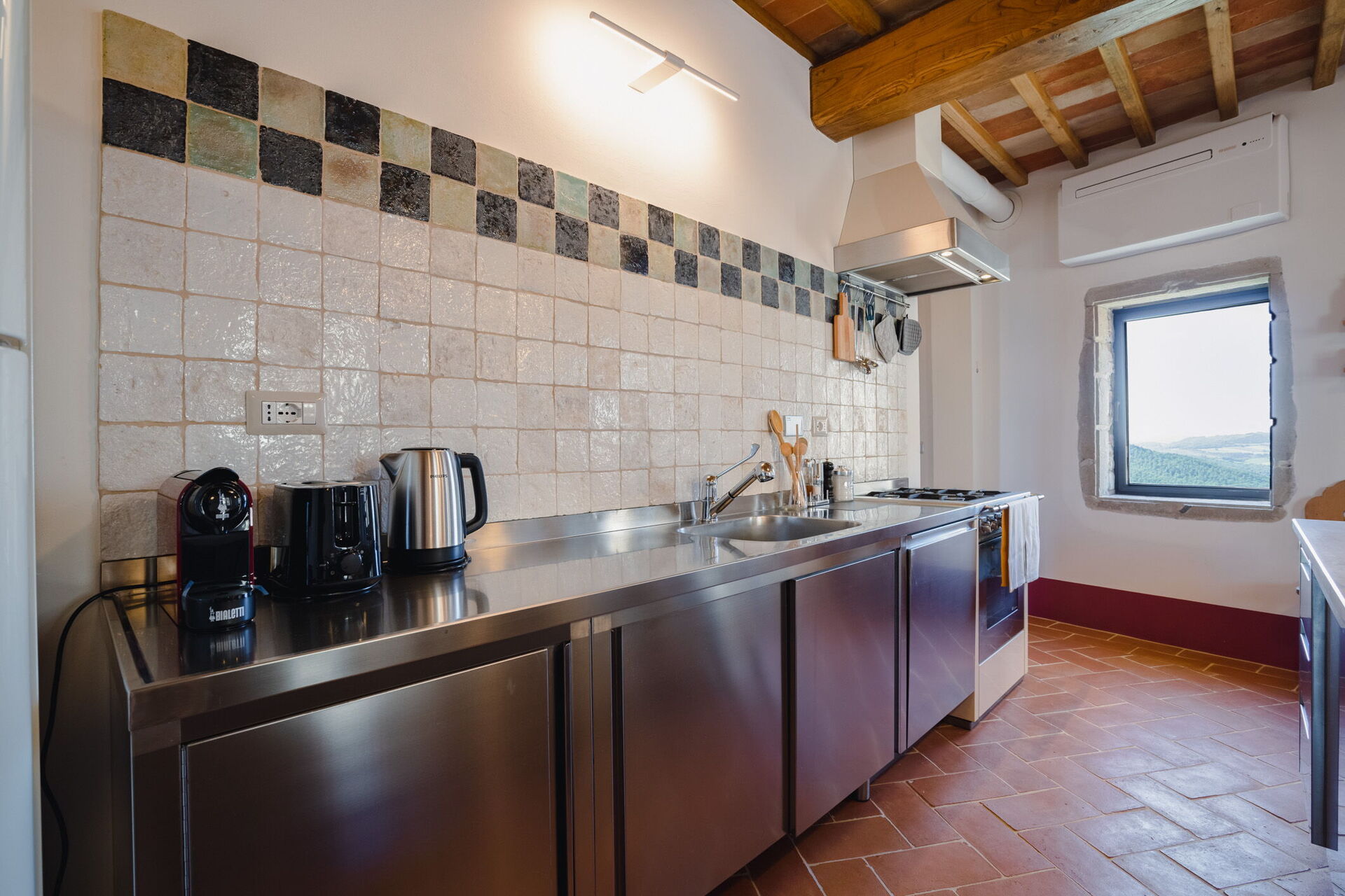 Tras llegar encontrará una estupenda propiedad limpia y acogedora con vista las colinas perfecta para unas vacaciones relajadas en Toscana. Después un día pasado visitando museos, disfrute de una buena copa de vino con sus amigos y su familia - lo mejor para relajarse después de un largo día. Comer con familia y amigos es un aspecto de gran importancia en la cultura toscana. Aproveche de una cocina bien equipada para preparar comidas utilizando productos locales durante sus vacaciones. La cocina incluye cafetera, estufas y nevera, además de, muchas vajillas y cubiertos para hasta cuatro personas.