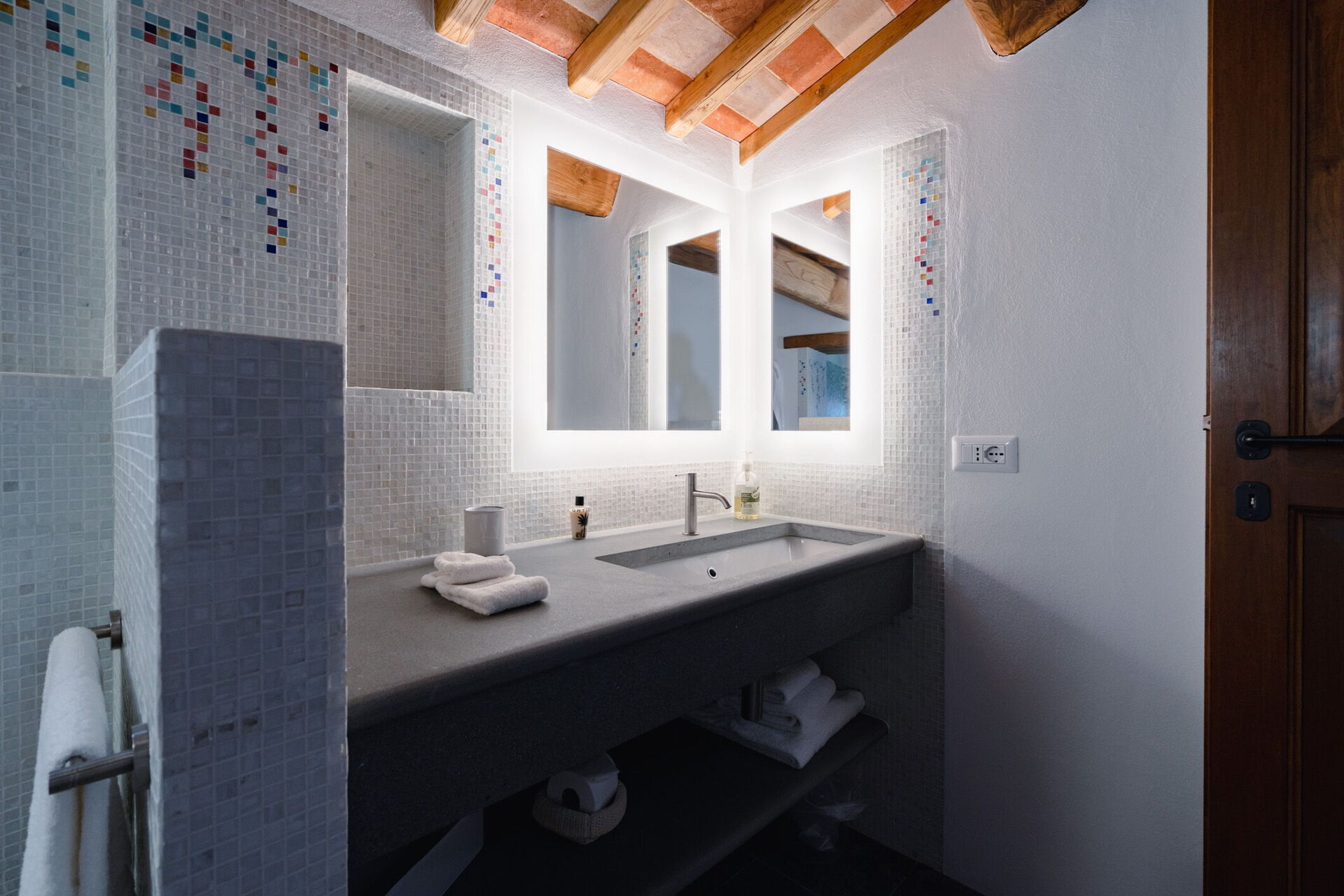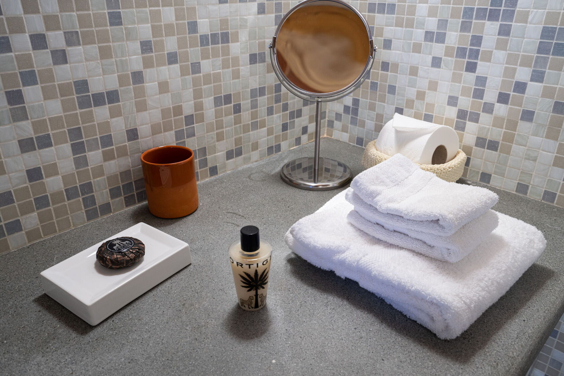 Habitación con baño 2: cama doble, WIFI internet, aire acondicionado, ventilador portátil, lavabo, baño, bidé, ducha, secador.