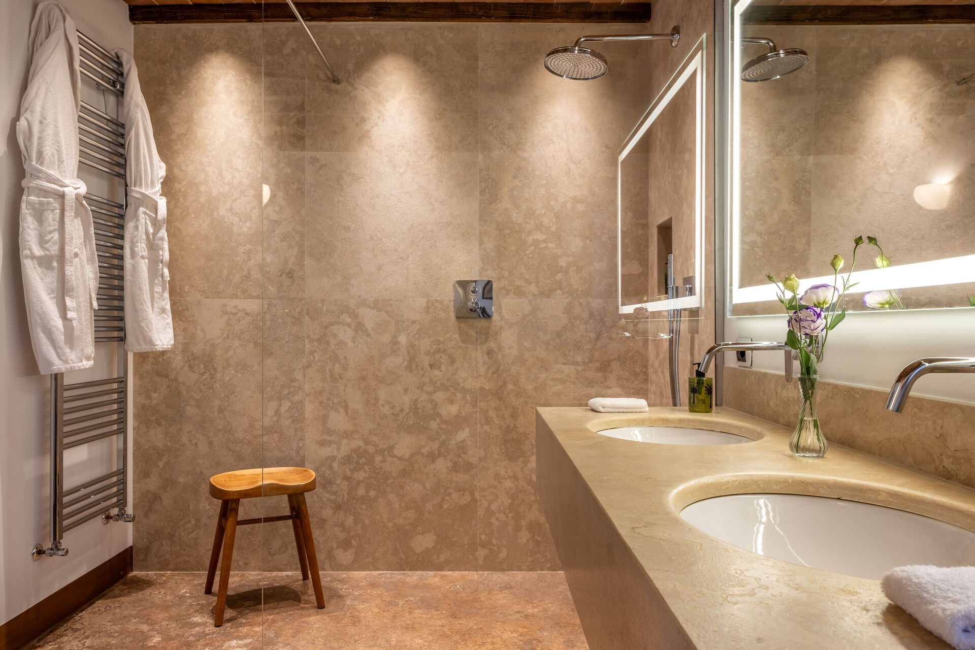 Hay dos anexos, cada uno con un dormitorio doble y un cuarto de baño.