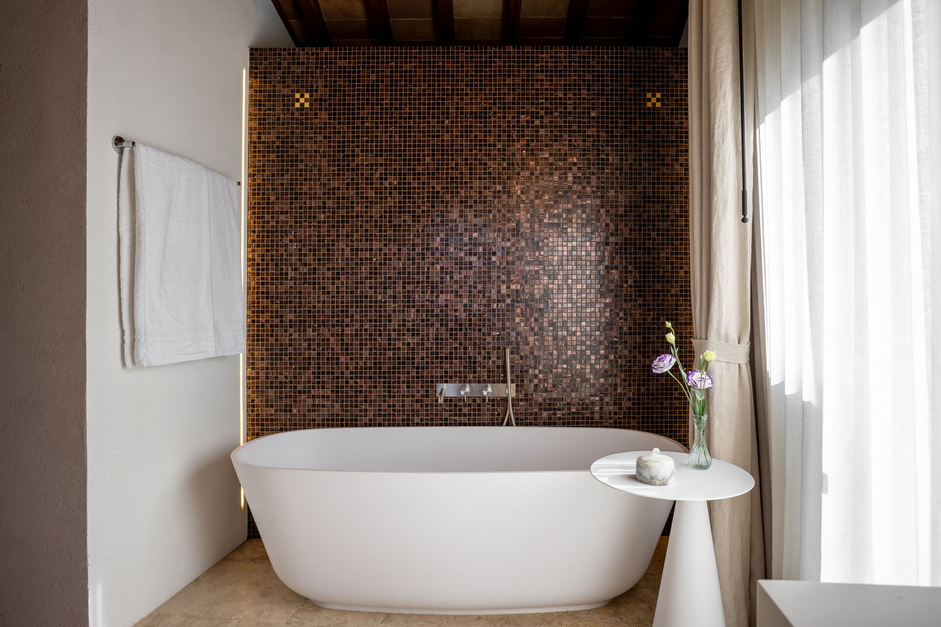 Habitación con baño 2: cama doble, WIFI internet, aire acondicionado, televisión, lavabo, baño, bidé, bañera, ducha, secador.
