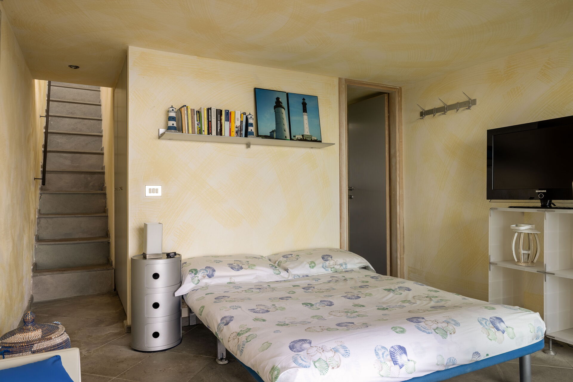 Habitación: sofá cama de matrimonio (ancho: 140m, longitud: 190m), WIFI internet, aire acondicionado, acceso al jardín.