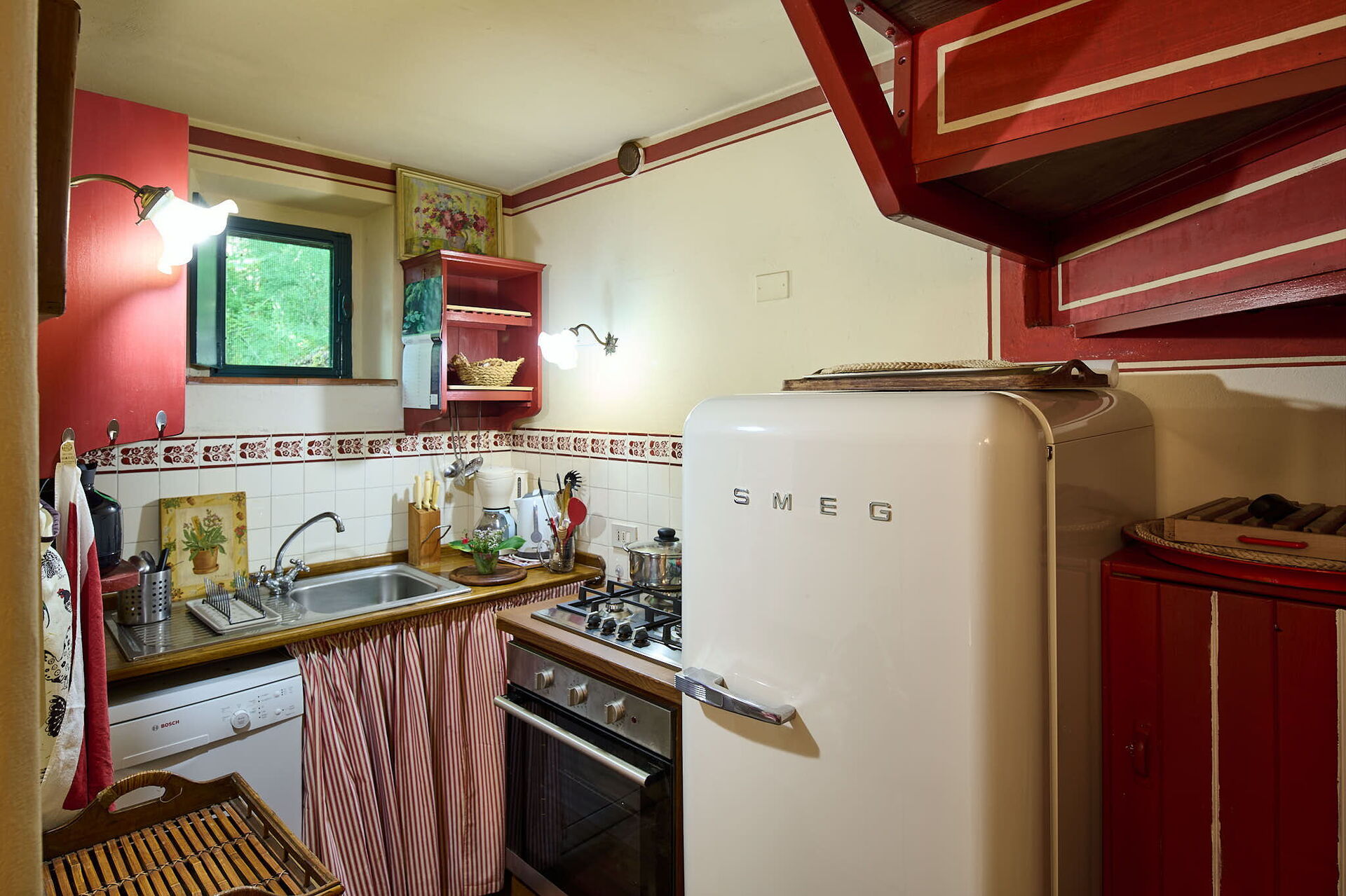 Tras llegar encontrará una hermosa propiedad limpia y acogedora con vista las colinas perfecta para unas vacaciones relajantes en Toscana. Para su goce encontrará jardín privado donde puede relajarse gustandose un buen refresco después un día pasado compras.Uno de los beneficios de estar en una casa de vacaciones sino que en hoteles, es la posibilidad de relajarse tras un largo día de visitas con la familia y los amigos. Al anochecer sigue disfrutando con una buena comida y un buen vino local. Cenar con familia y amigos es un aspecto de gran importancia en la cultura toscana. Aproveche de una cocina bien equipada para preparar comidas utilizando productos locales durante sus vacaciones. La cocina incluye cafetera, toaster, estufas y nevera, además de, muchas vajillas y cubiertos para hasta dos personas.