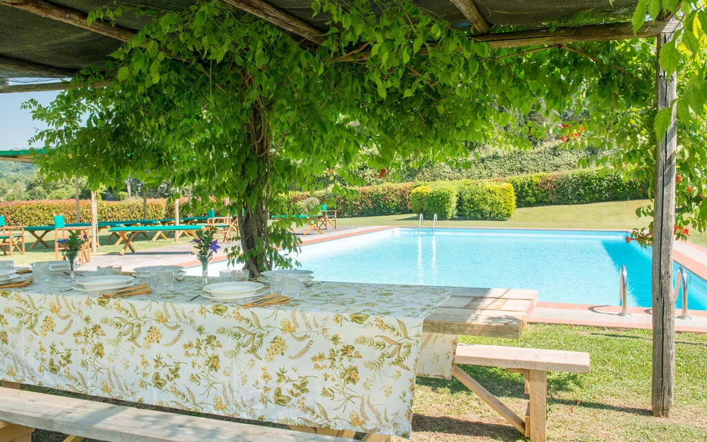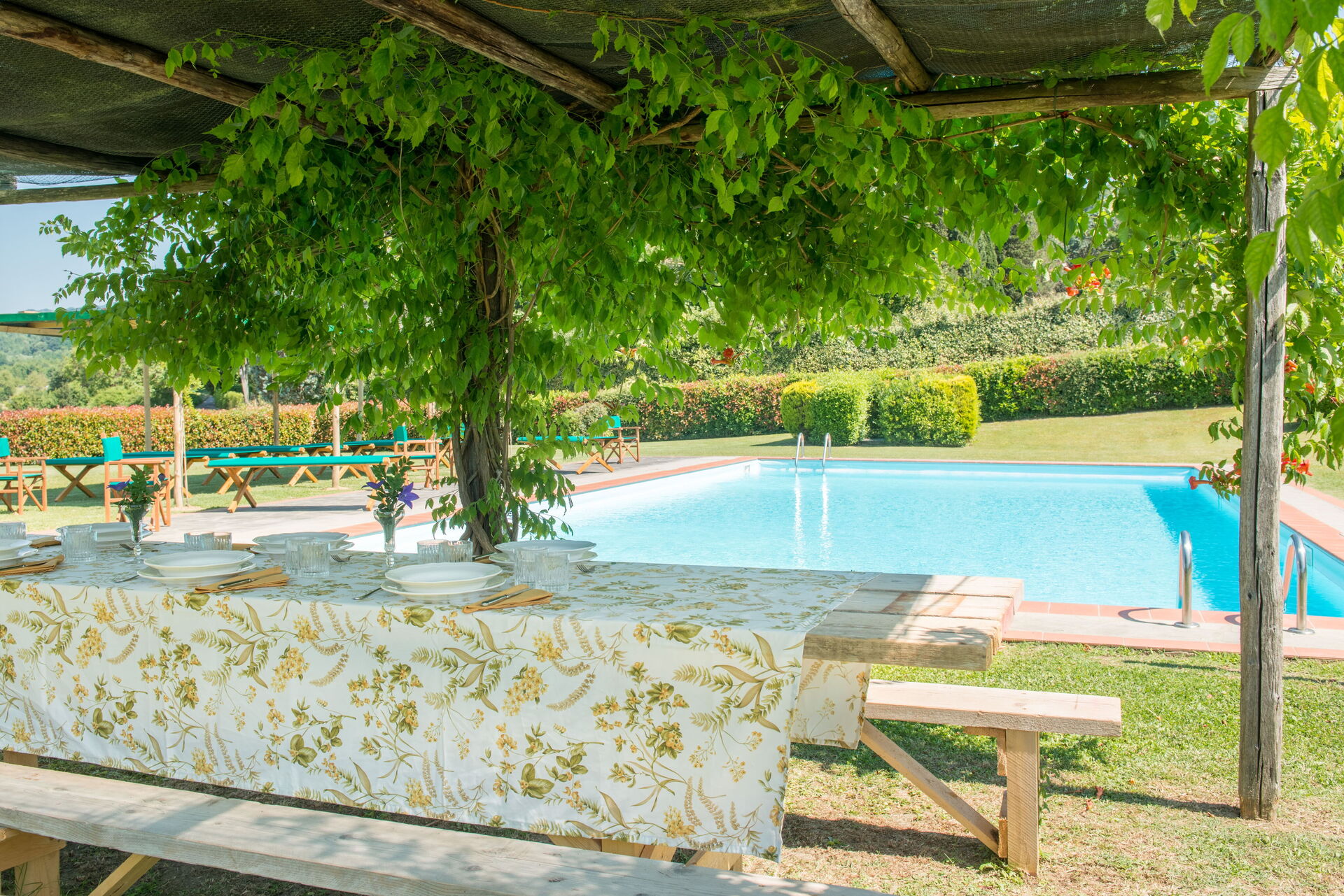 Tendrá acceso exclusivo a los extensos espacios exteriores que rodean Villa Martini, incluyendo la magnífica piscina que mide 6,5 x 15 metros y está situada a 200 metros de la casa principal. El área junto a la piscina está cuidadosamente amueblada con cómodas tumbonas y sombrillas donde puede relajarse y disfrutar del sol toscano. Un pórtico adyacente a la villa proporciona un entorno ideal para cenas al aire libre, amueblado con mesa y sillas donde puede disfrutar de las comidas mientras contempla las vistas panorámicas del valle del Mugello. El extenso parque cuenta con una capilla y un bosquecillo de árboles centenarios que añaden encanto histórico y belleza natural a la finca. Las áreas exteriores están diseñadas para proporcionarle espacios tranquilos donde relajarse, rodeado de 230 hectáreas de tierras de cultivo con cultivos de trigo y cereales alternando con bosques de castaños y campos. El seto de laurel proporciona una separación natural entre los terrenos de la villa y los apartamentos de la casa de campo, garantizando una sensación de aislamiento y tranquilidad durante su estancia.
