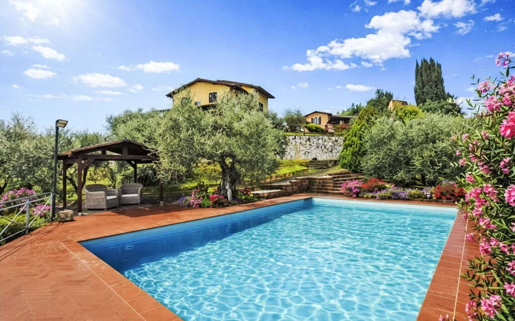 Casa unifamiliar "Delfina", 98 m s.n. m., agradable, confortable de 2 plantas. En el barrio de Marti, a 5 km del centro de Montopoli in Val d' Arno, lugar tranquilo en un barrio residencial. Privado: terreno en estado natural 3'000 m2 (vallada), jardín natural 70 m2 (vallada), piscina (5 x 10 m, 120 - 220 cm de profundidad, Disponible por temporada: 15.Abr. - 15.Oct.) con sistema de limpieza por electrolysis de sal. Cenador, muebles de jardín. En el inmueble: aire acondicionado, lavadora, calefacción disponible desde el 15.Nov. - 15.Abr.. Aparcamiento en el mismo terreno. Tienda de comestibles 2 km, supermercado 4 km, restaurante 1 km, parada autobús 600 m, estación de tren 4 km. Atracciones en los alrededores: Pisa 38 km, Firenze 58 km, Lucca 48 km, Forte dei Marmi 70 km, Siena 85 km, San Gimignano 45 km. A tener en cuenta: equipamiento para bebés a demanda (incluido). El propietario vive en el mismo terreno.