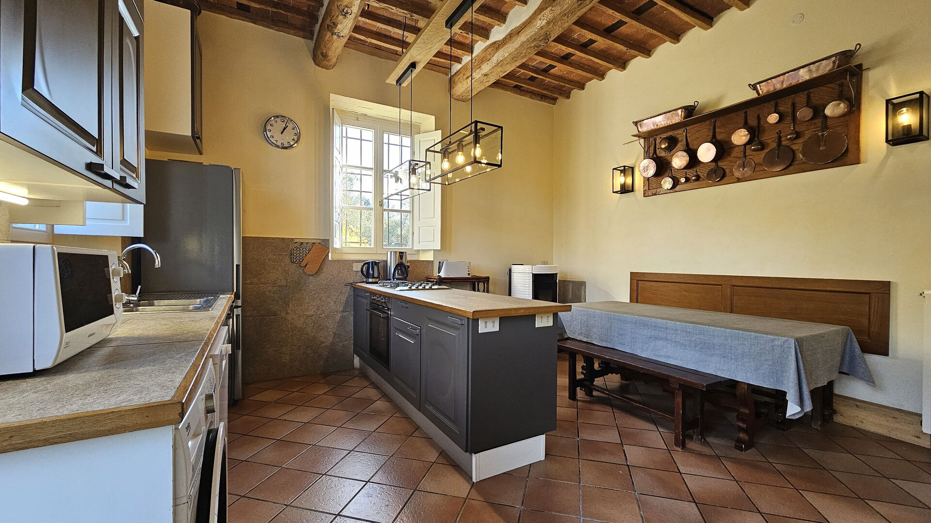 Tras llegar encontrará una estupenda propiedad limpia y acogedora con vista el mar y las colinas perfecta para unas vacaciones relajadas en Toscana. Independientemente de como pasa sus días - shopping, excursiones, museos o simplemente visitando y descubriendo el paisaje, cuando llega a casa puede relajarse con amigos y familia cerca de la piscina para un final de día perfecto en Toscana. Cenar con familia y amigos es un aspecto de gran importancia en la cultura toscana. Aproveche de una cocina bien equipada para preparar comidas utilizando productos locales durante sus vacaciones. La cocina incluye cafetera, microondas, toaster, estufas y nevera, además de, muchas vajillas y cubiertos para hasta 12 personas.