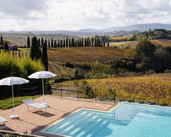 "Podere Galieni", 8 estancias casa de campo 250 m2 en 3 plantas. Espacioso y luminoso, completamente reformada en 2025, con mobiliario muy confortable y de buen gusto: salón-comedor con mesa de comedor y rincón cocina. Salida al jardín. Comedor grande con ventanal con aire acondicionado. Salida a la terraza, a la piscina. 1 dorm. con 1 cama (80 cm, 200 cm de longitud), 1 cama doble, ducha/bidet/WC y TV (pantalla plana), aire acondicionado. Cocina (horno, lavavajillas, tostadora, hervidor de agua eléctrico, microondas, cafetera eléctrica). WC separado. En planta inferior: 2 ducha/WC. Planta superior: (escalera exterior) 2 dorm. dobles, cada habitación con ducha/bidet/WC y TV (pantalla plana), aire acondicionado. 1 dorm. con 1 cama (80 cm, 200 cm de longitud), 1 cama doble, ducha/bidet/WC y TV (pantalla plana), aire acondicionado. Salida a la terraza. 2 dorm., cada habitación con 1 cama (80 cm, 200 cm de longitud), 1 cama doble, ducha/bidet/WC y TV (pantalla plana), aire acondicionado. Calefacción, aire acondicionado. Terraza grande cubierta, terraza-jardín. Muebles de terraza, tumbonas, trastero. Vista panorámica muy bonita al paisaje y San Gimignano. El alojamiento dispone de: lavadora, plancha, mosquitera, trona, cuna hasta 2 años, secador de pelo. Internet (Wifi, gratis). Plaza de aparcamiento junto a la casa. A tener en cuenta: apartamento para no fumadores. Detector de humo, extintores. No hay conexión interna entre las diferentes unidades. No hay conexión interna entre las plantas. La piscina descrita es de uso privado.