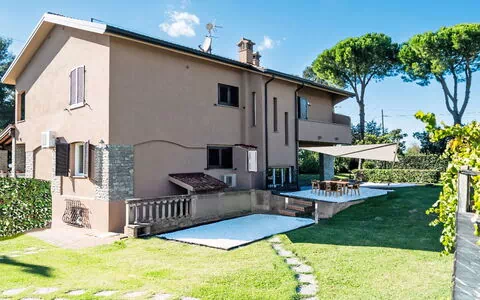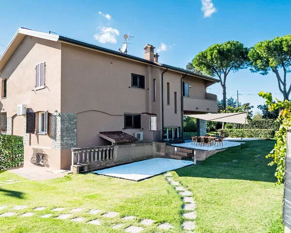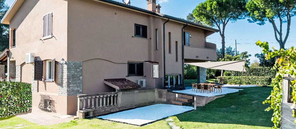 La villa "Rose Adriano Home" ocupa 150 m² distribuidos en 2 plantas y alberga un máximo de 8 huéspedes en 3 dormitorios y 3 baños. Fue parcialmente reformada en 2026 y combina interiores amplios y luminosos con mobiliario acogedor y elegante en ambas plantas.