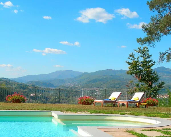 Villa Saida is built respecting the traditions of Tuscany, using materials available in the area, like wooden beams and rafters handcrafted on local walnut. Also materials for roof and floor are handmade in Tuscany. Certainly modernity is not forgotten. The value of the structure does not derive only from the high quality of the materials and from many comforts, but also from its location: in fact, on an area from where we can enjoy an unique view of the Alpi Apuane (the marble mountains), the Rocca Ariostesca in the centre of Castelnuovo, reachable walking on a shaded road, the Monte Alfonso and its fortress (that is part of the natural park of the Alpi Apuane) and finally the Appennino. In the river Serchio Valley we can see the Villetta bridge, one of the highest rail bridge of Italy. On the left we can admire the Pania della Croce, while on the right the beautiful "Pania di Corfino", a rocky group on which there is the Orecchiella Park, and at the far end the pass of the Radici inside the Appennino Park that, when snowy in winter, is a incredible sight. The area offers the possibility to practise many sports (trekking, golf, mountain bike, horse riding, in addition of the near tennis courts and soccer fields). Also other outdoor activities are available for a complete relaxation.