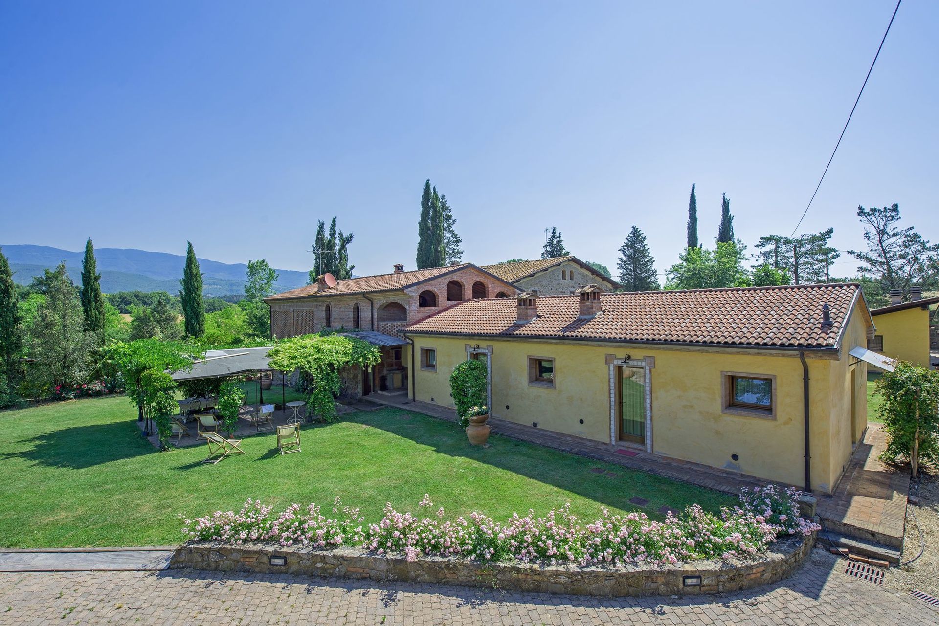 Distances: the small town of Campogialli with food shops 1 km away, Terranova Bracciolini with all kinds of shops 6 km, Arennzo approx. 20 km, Florence approx. 60 km away. The Chianti Classico area is in a 20-minute drive.