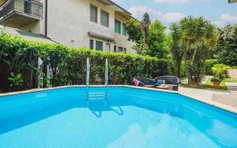 Casa Antonia es una casa de vacaciones de gran tamaño, apta para familias, ubicada en una posición central en Marina di Pietrasanta, Italia, a tan solo 500 metros de la playa. La propiedad se encuentra apartada de la carretera, lo que garantiza un entorno tranquilo y privado. La casa está equipada para satisfacer las necesidades de familias que buscan comodidad y conveniencia. Un jardín privado cercado y lleno de flores y árboles proporciona un hermoso entorno natural, mientras que la piscina redonda, también cercada por seguridad, añade un toque refrescante a los espacios exteriores.