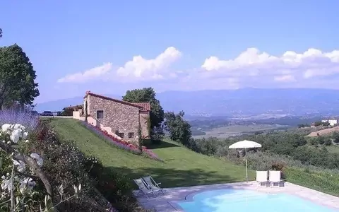 The property is currently composed by a main villa (now not inhabited) and by the stone hay-loft for rent, both side by side on the top level of the hill (outdoors are about 35 ha large).