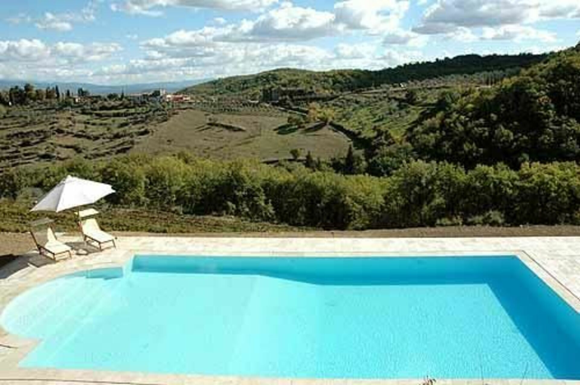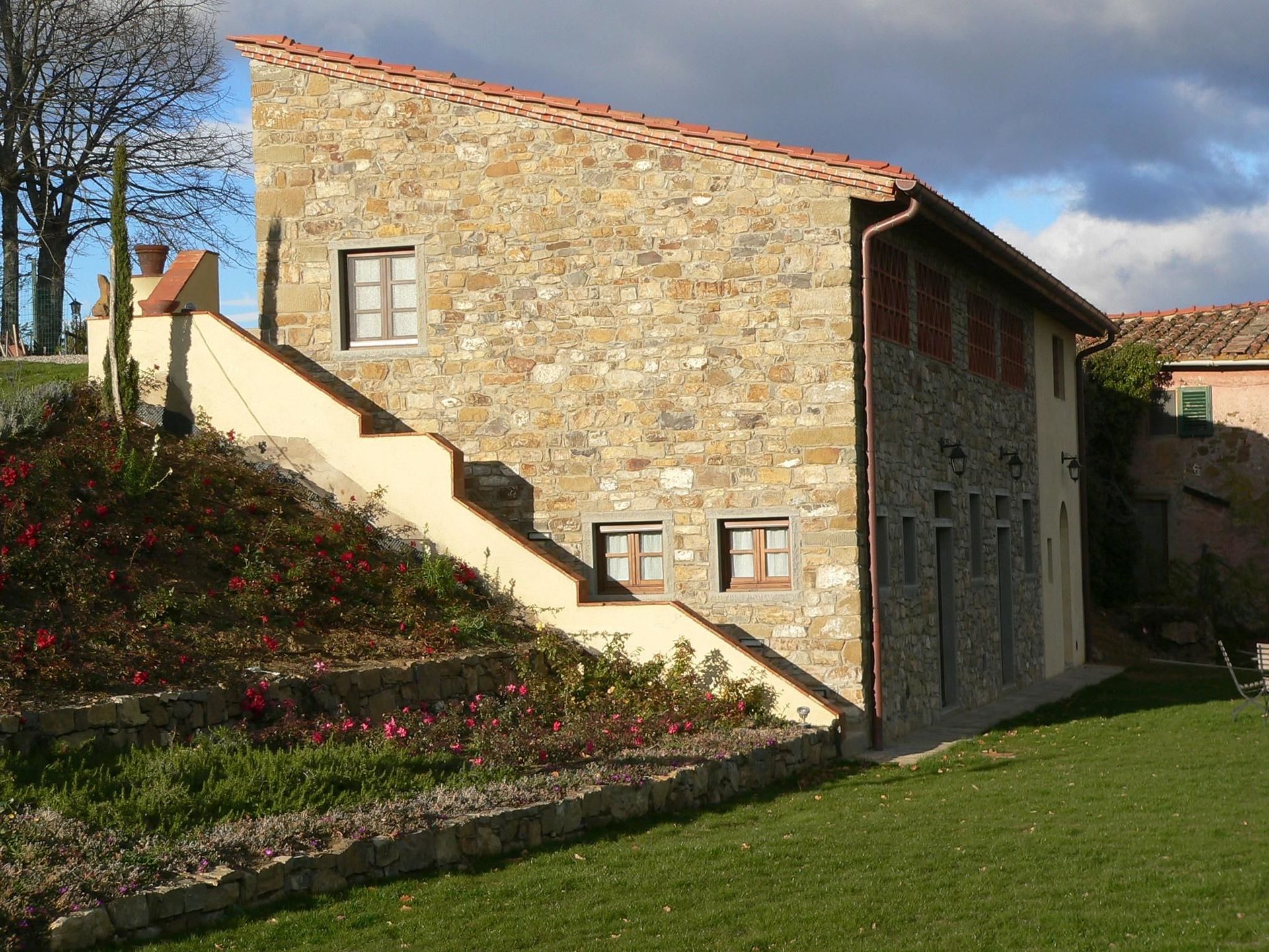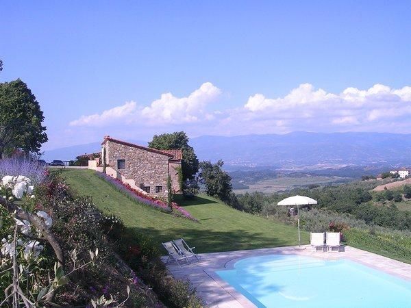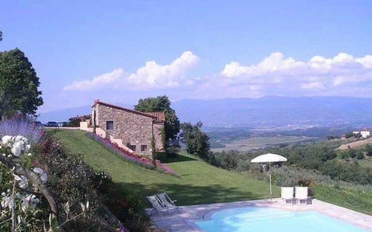 Villa San Pancrazio is built into the hillside and consists of two separate self contained apartments. The entrance to the first floor apartment is level with the driveway. The ground floor apartment is reached via a flight of steps at the side of the house; alternatively there is also a wide slope down to the lower level.