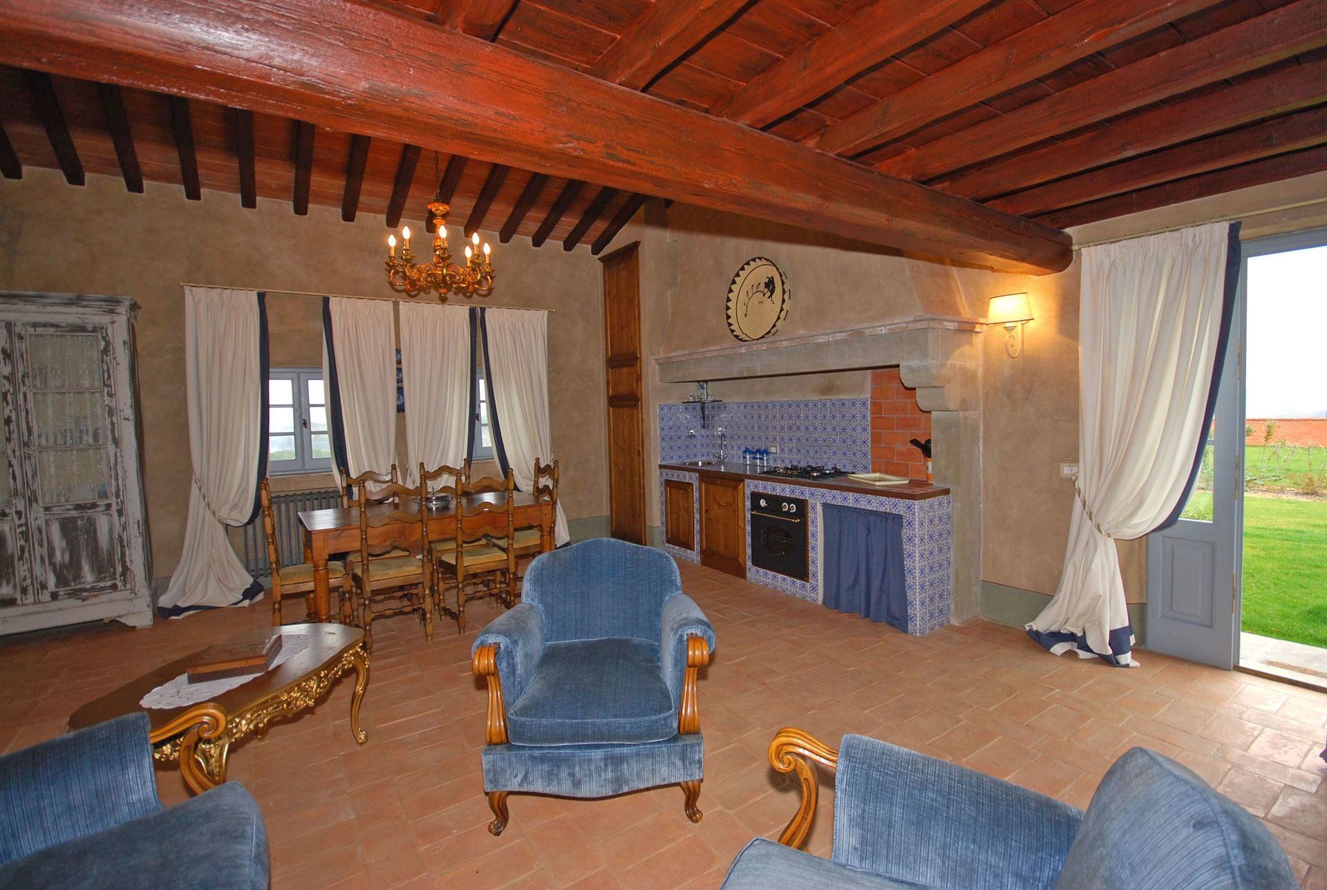 Planta baja: Ingreso en el salòn ( TV-sat ) – comedor , cocina americana ( freezer , horno , lavaplatos , tostapan , esprimidor ) , baño con ducha , altillo con sofa cama matrimonial (extra).
