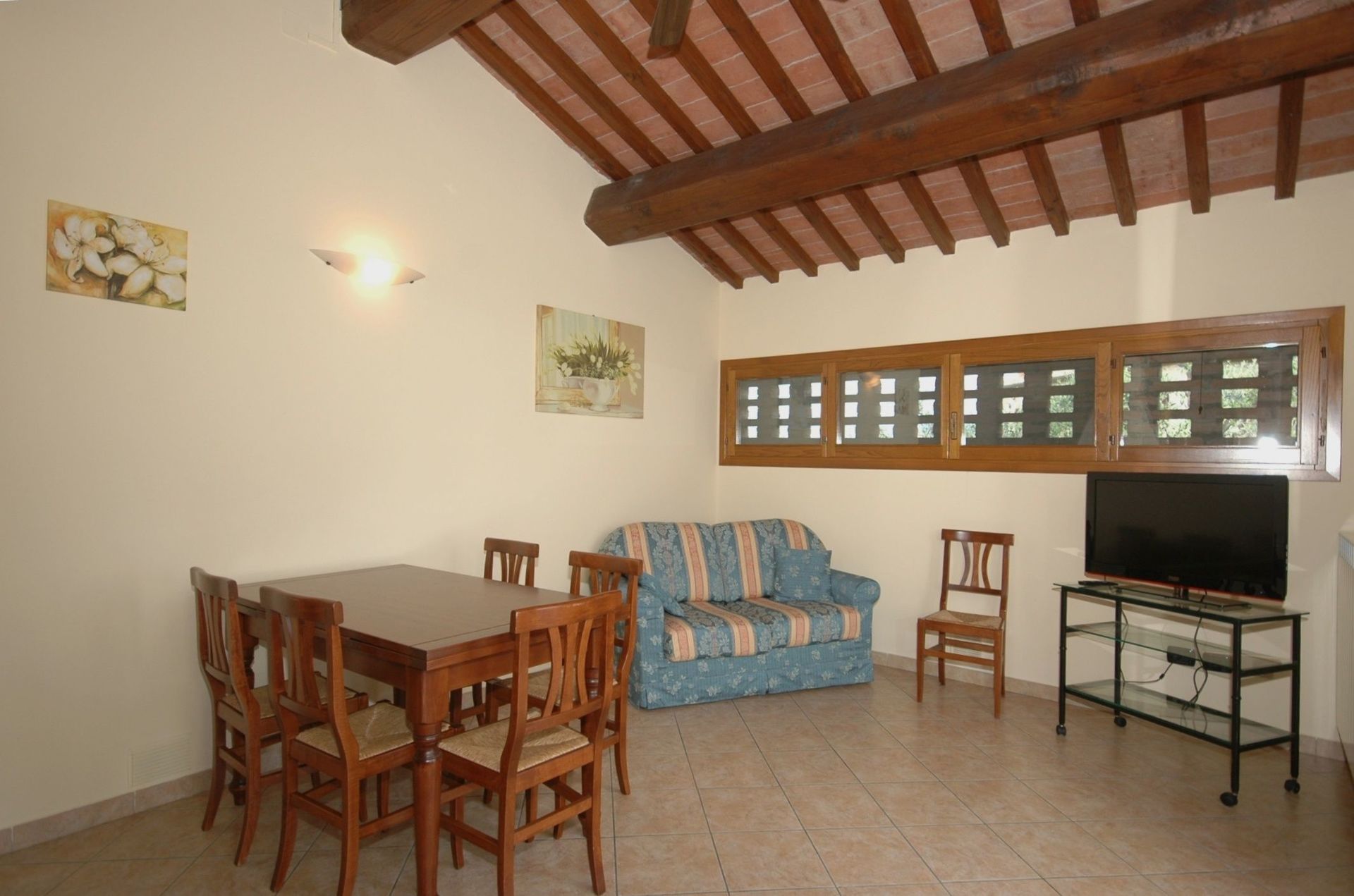 Mezzanine ground floor (access via 4 steps): living-room (satellite TV) with sofa (for 2 persons), dining area and kitchen corner (oven, freezer), double bedroom with ensuite bathroom with shower, twin-bedded room with ensuite bathroom with shower.