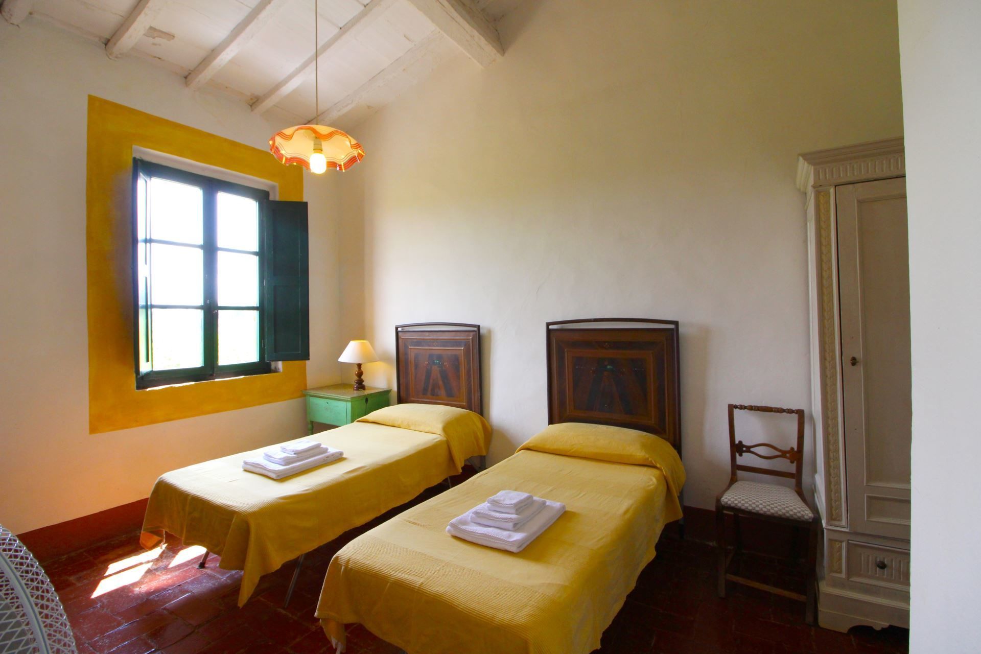 From the windows of the old farmhouse, you will enjoy an incomparable view of the suggestive landscape of the Valdichiana hills, where, scattered here and there, you will glimpse beautiful farmhouses, 19th-century villas and medieval villages dominated by mighty castles. An idyllic setting that will be nourishment for both your eyes and your mind.