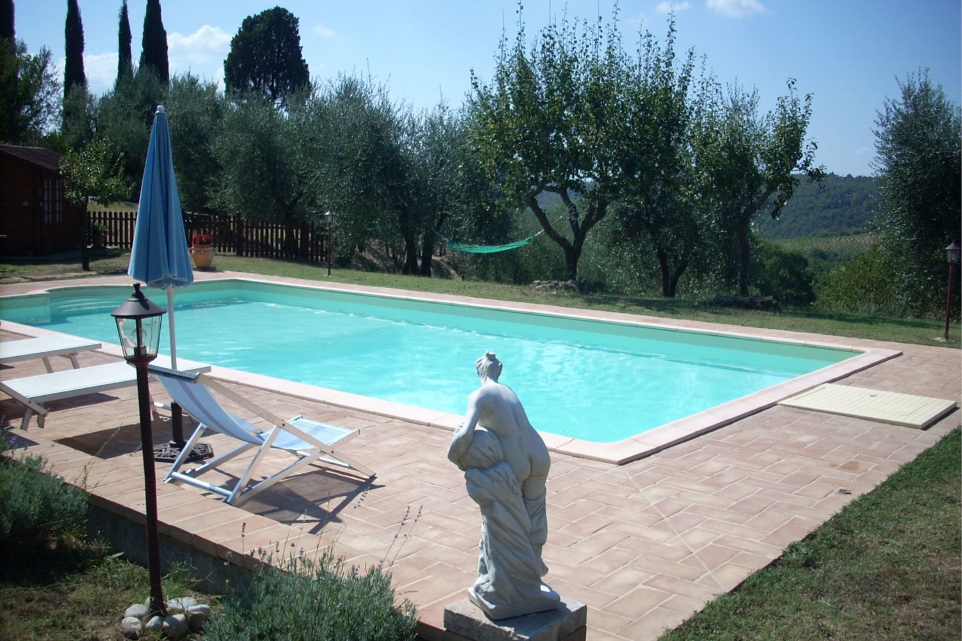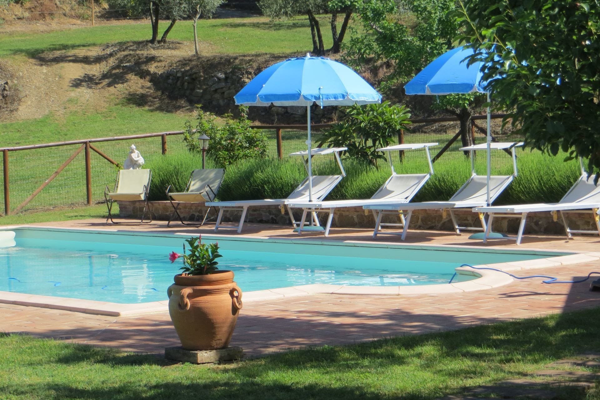 A few steps from the house and immersed among the olive trees is the completely fenced swimming pool for your exclusive use (size 5x10 m - depth 1.10-1.50 m - open from 01st May to 30th September), a green oasis for your summer days. In front of the house you will have a large fenced-in courtyard equipped with a table and chairs on the nice porch, where you can enjoy grills and good local wine. Deck chairs, sun loungers, table tennis table, barbecue, 2 bicycles and shaded parking space are also available. Your pets are welcome at Podere Capanne.