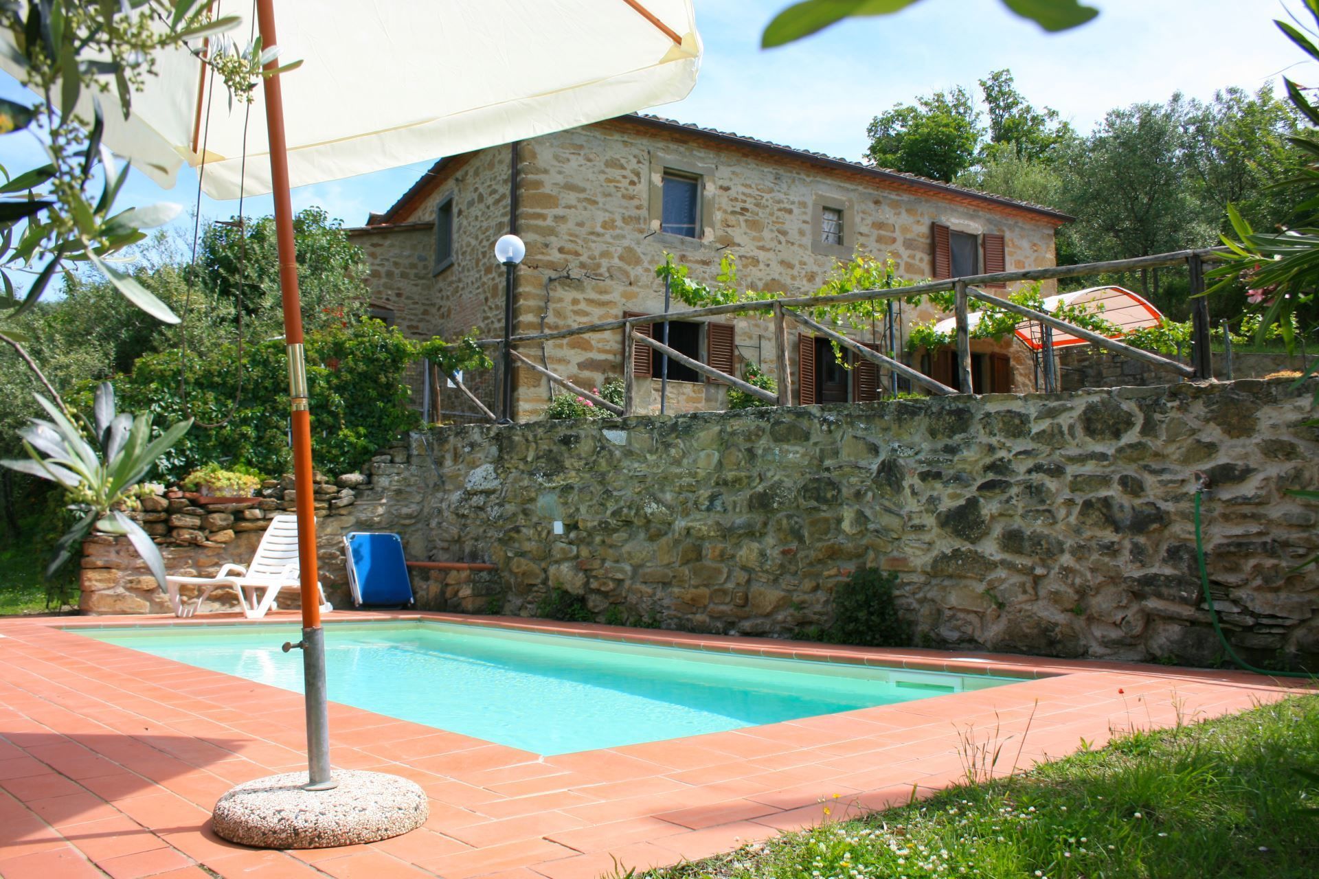 Imagínese esto, si lo desea: una bonita villa en una pequeña ciudad con la exuberante vegetación de los árboles y vistas a los viñedos y colinas de la campiña toscana a su alrededor, una entrada principal que da a un pequeño patio con flores y árboles, flores trepadoras y vides que serpentean por la solieada fachada amarilla de la villa, ventanas con persianas verdes, un balcón romántico en el primer piso por encima de la entrada, y un tejado de terracota para rematar. Esta es la primera visión de ensueño que los huéspedes tienen cuando llegan a Villa Toppani Del Sodo y esto crea en gran medida el tono apropiado para sus vacaciones aquí.