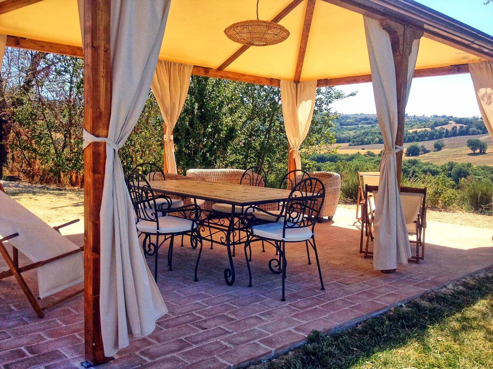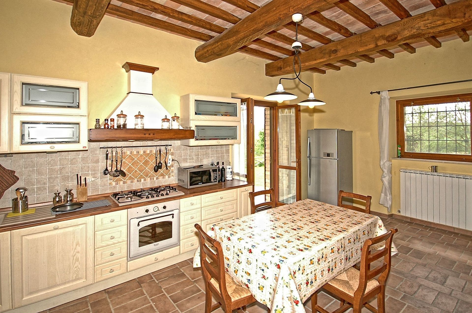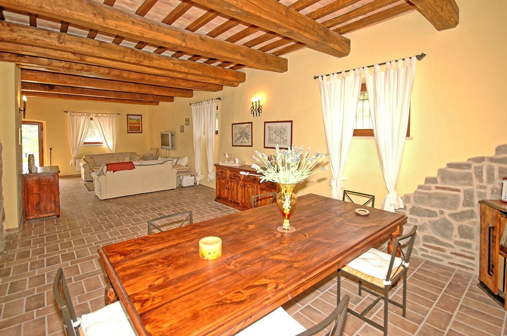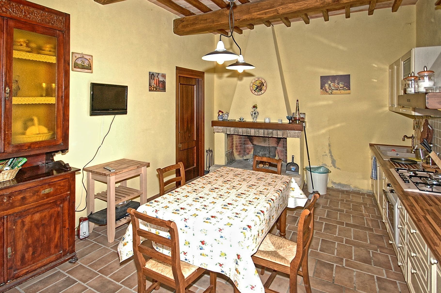 Comfortable and welcoming country house just a few kilometres from Todi, the famous city overlooking the Tevere valley, built by the Etruscans between 300 and 100 BC. The house sits in a tranquil spot among Umbria's green hills, and offers beautiful views of the surrounding countryside. Originally a farmhouse, the villa has been renovated with care, keeping its ancient charm and using authentic materials, such as terracotta floors and exposed beams. It is furnished completely and with quality, in a rustic style.