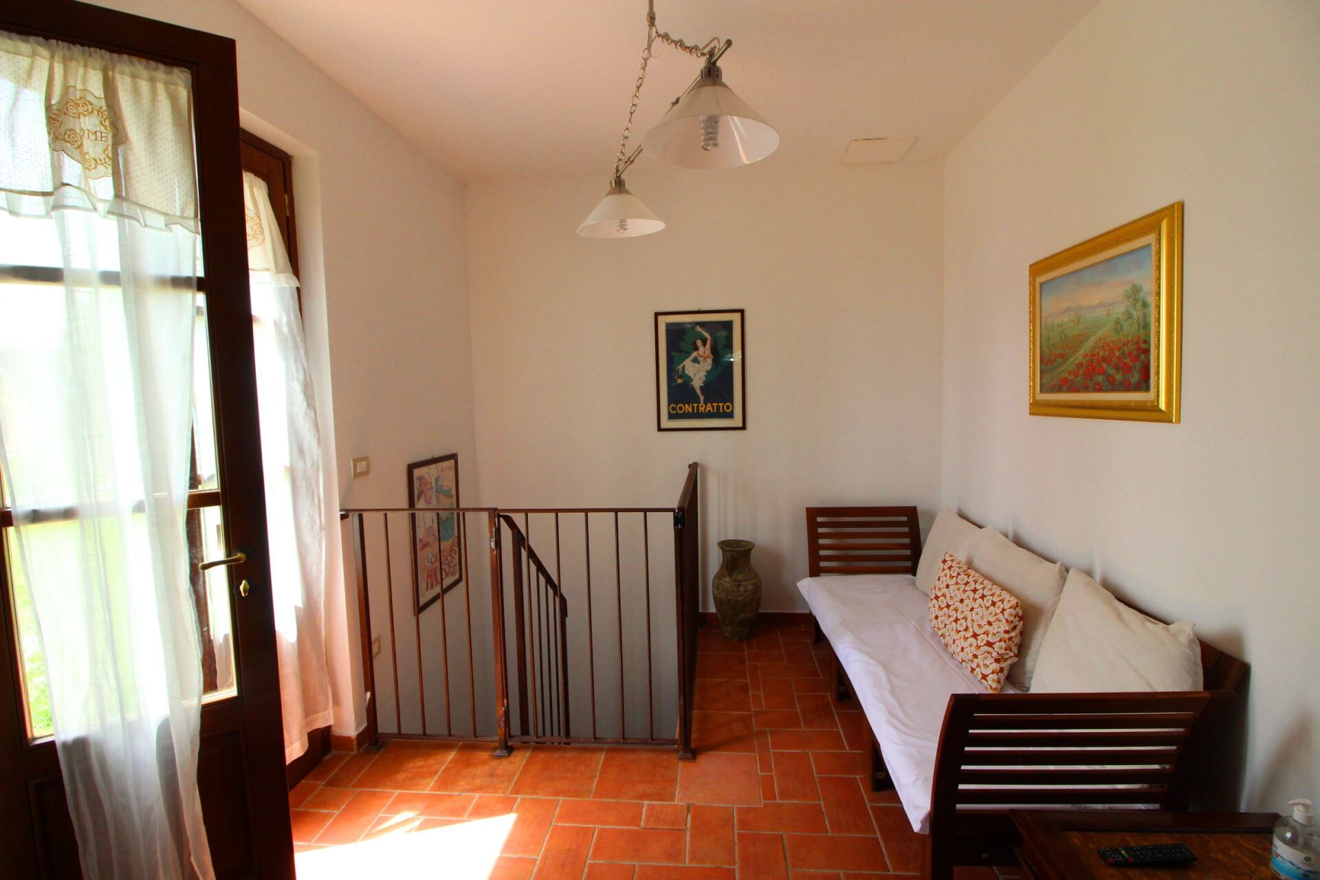 Ground floor apartment composed of living-dining room with kitchen corner, bathroom with shower, twin bedroom with French window overlooking the garden, double bedroom. From the living room going down some steps we find a sitting room with double sofa bed and bathroom with shower. Gazebo furnished with table and chairs to eat outside.