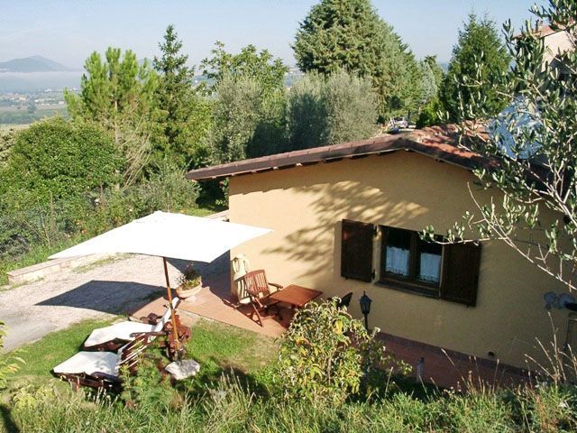 Ground floor: living-room (satellite TV) with dining area and kitchen corner (oven, freezer, dishwasher, washing-machine), double bedroom with extra single bed, bathroom with shower.