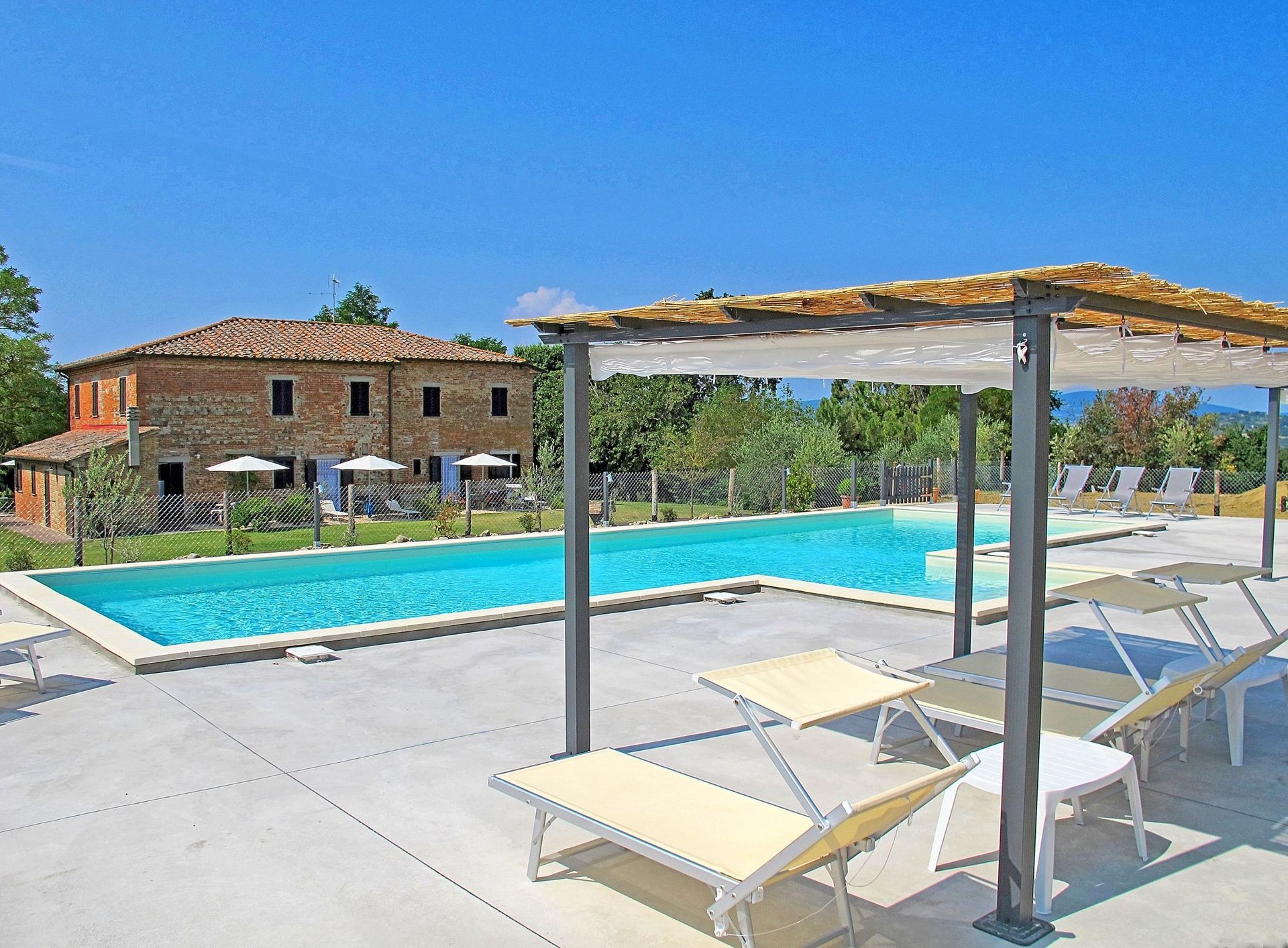 1st floor: living-room with fireplace, dining area, large kitchen corner (oven, freezer, dishwasher, microwaves, American coffee maker) and access on to a small furnished, covered terrace, 5 double bedrooms (convertible into twin-bedded rooms) with ensuite bathroom with shower.