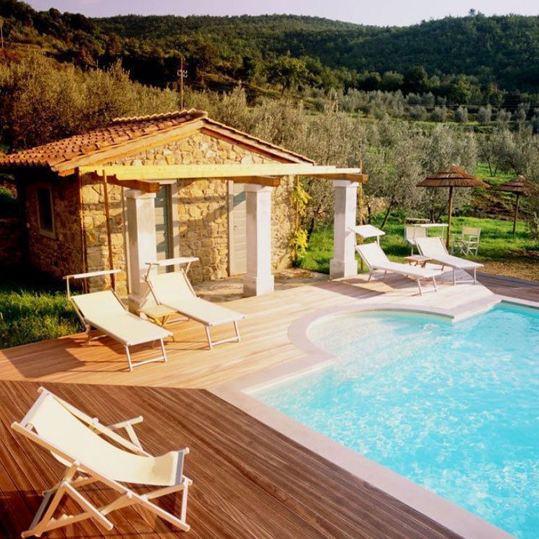 Beautiful 17th century villa converted into a comfortable country residence, just 5 km from Arezzo. The property is immersed in greenery and surrounded by woods, vineyards and olive groves. It is composed of a portion of the grand villa (the owners inhabit the other portion) and 4 suites in a guest house a short distance away, accomodating up to 24 guests comfortably. Outside there are furnished and private spaces, a large terrace and a beautiful private pool with sun deck.