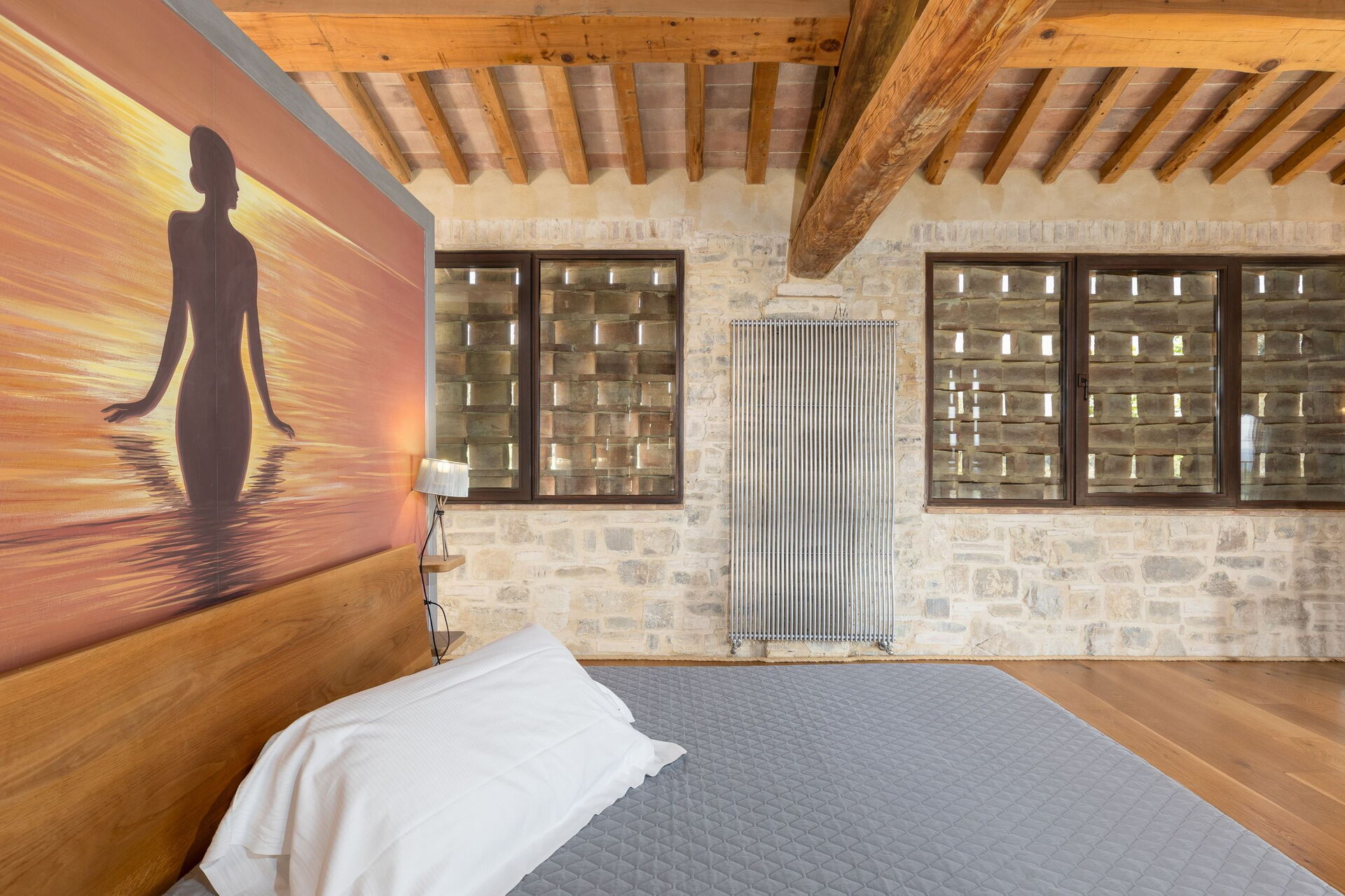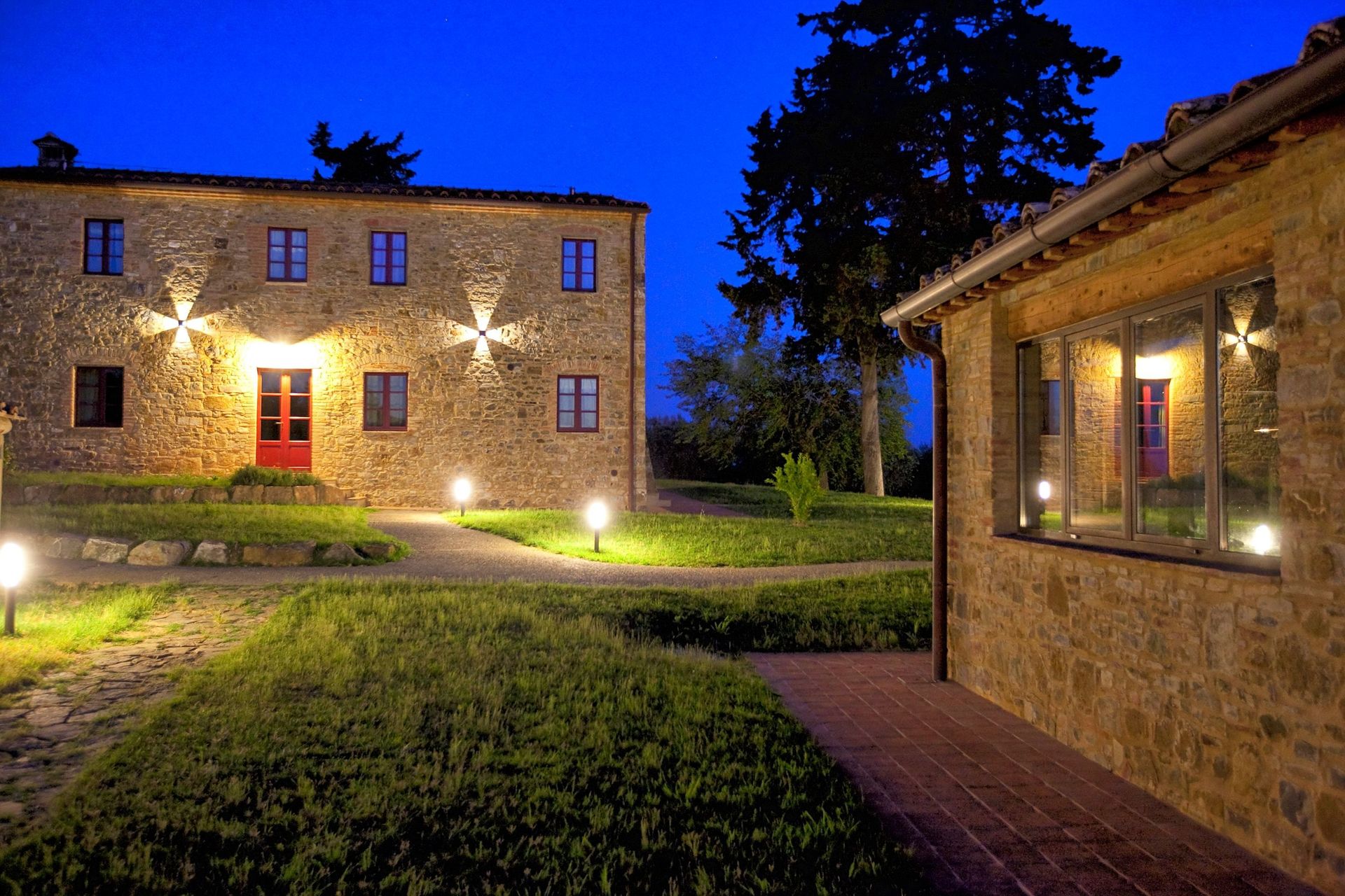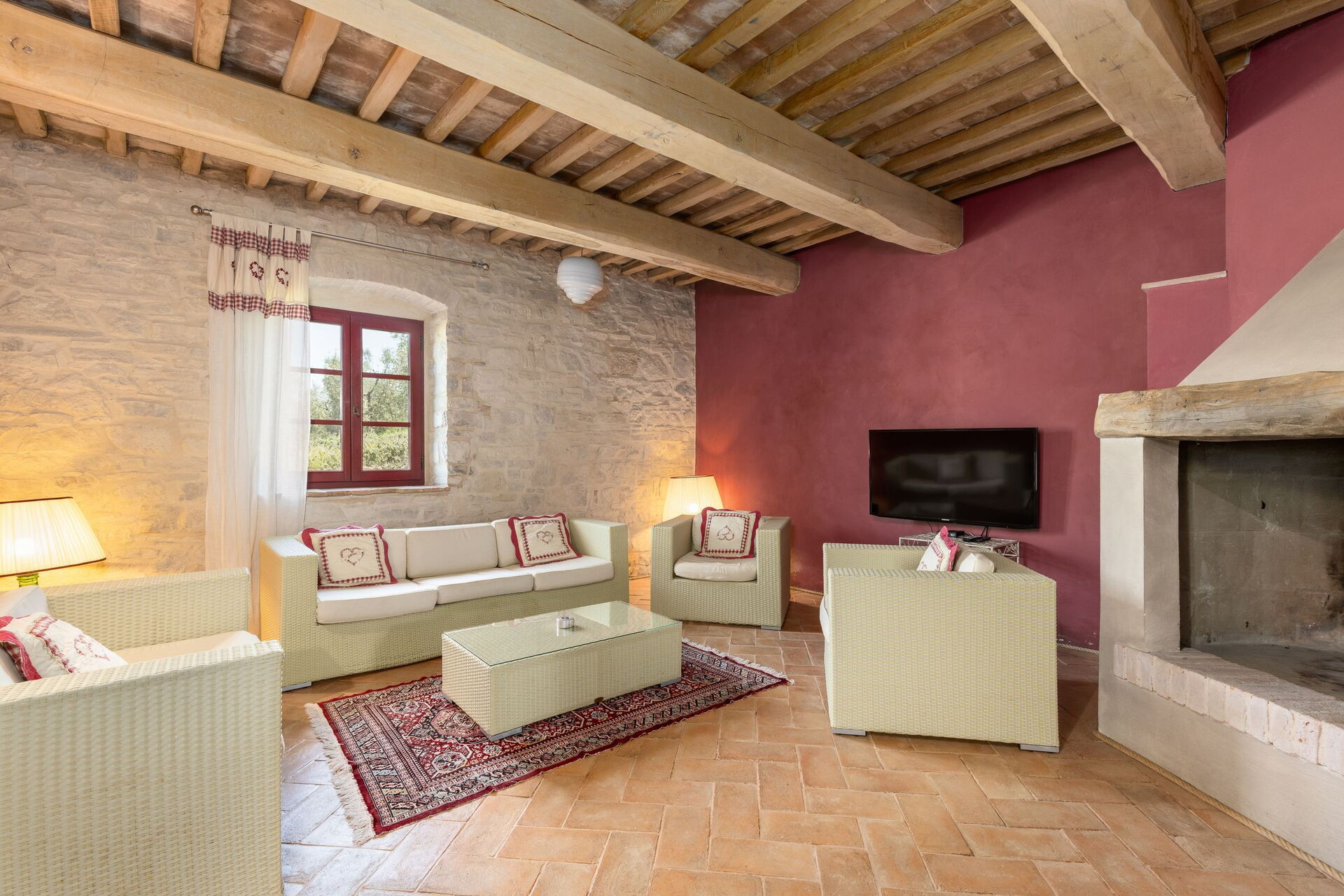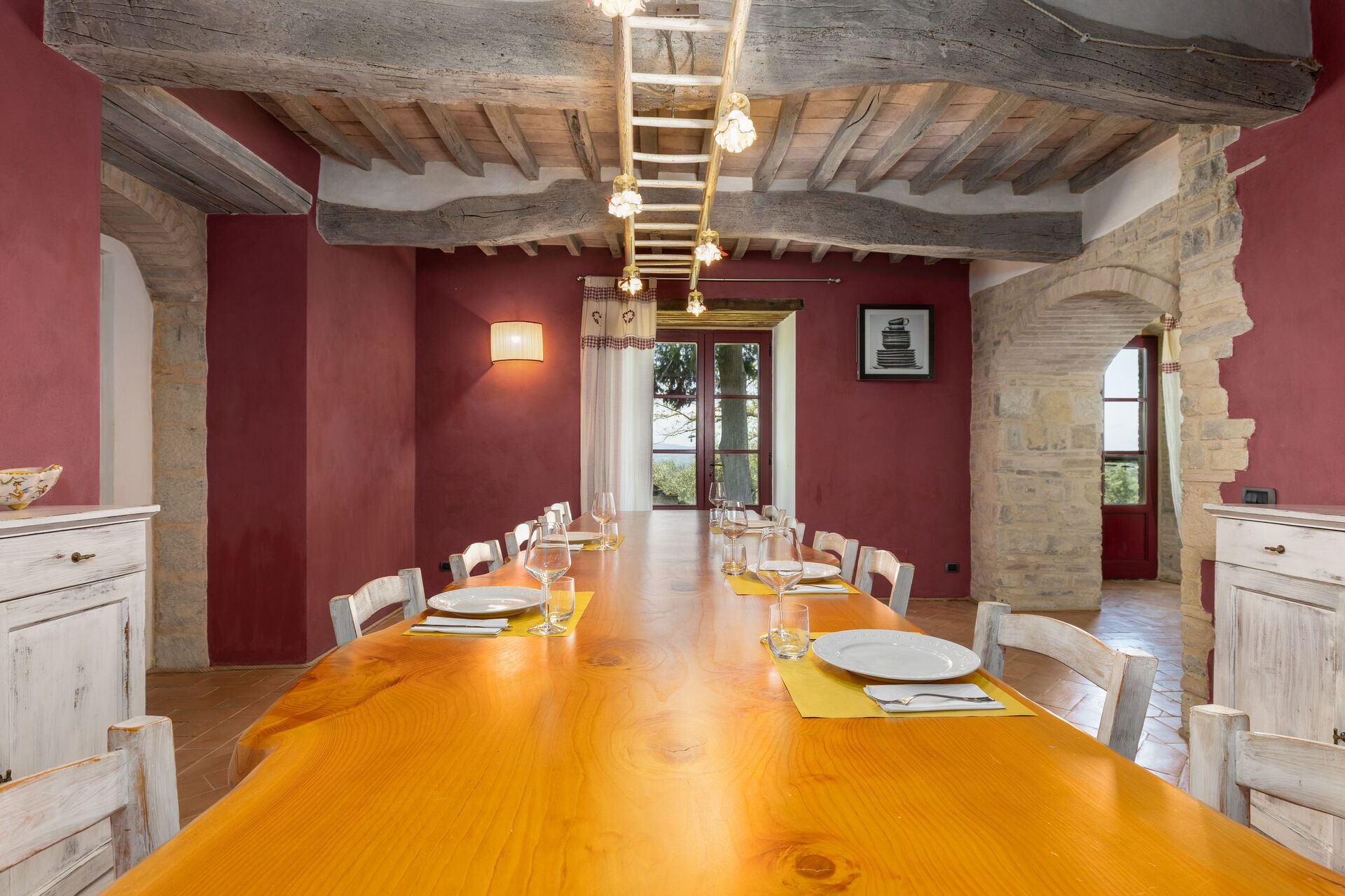The villa, equipped with all comforts, is composed of a main house and guest house, sleeping a total of up to 12 people. The property is surrounded by vineyards and olive groves, from which the owners produce wine and olive oil (guests will be offered a tasting in the estate's cellars).