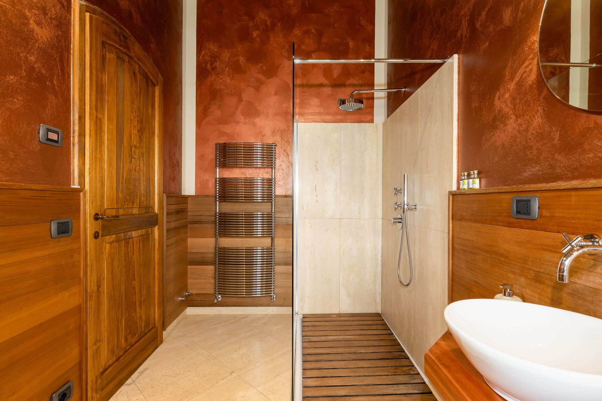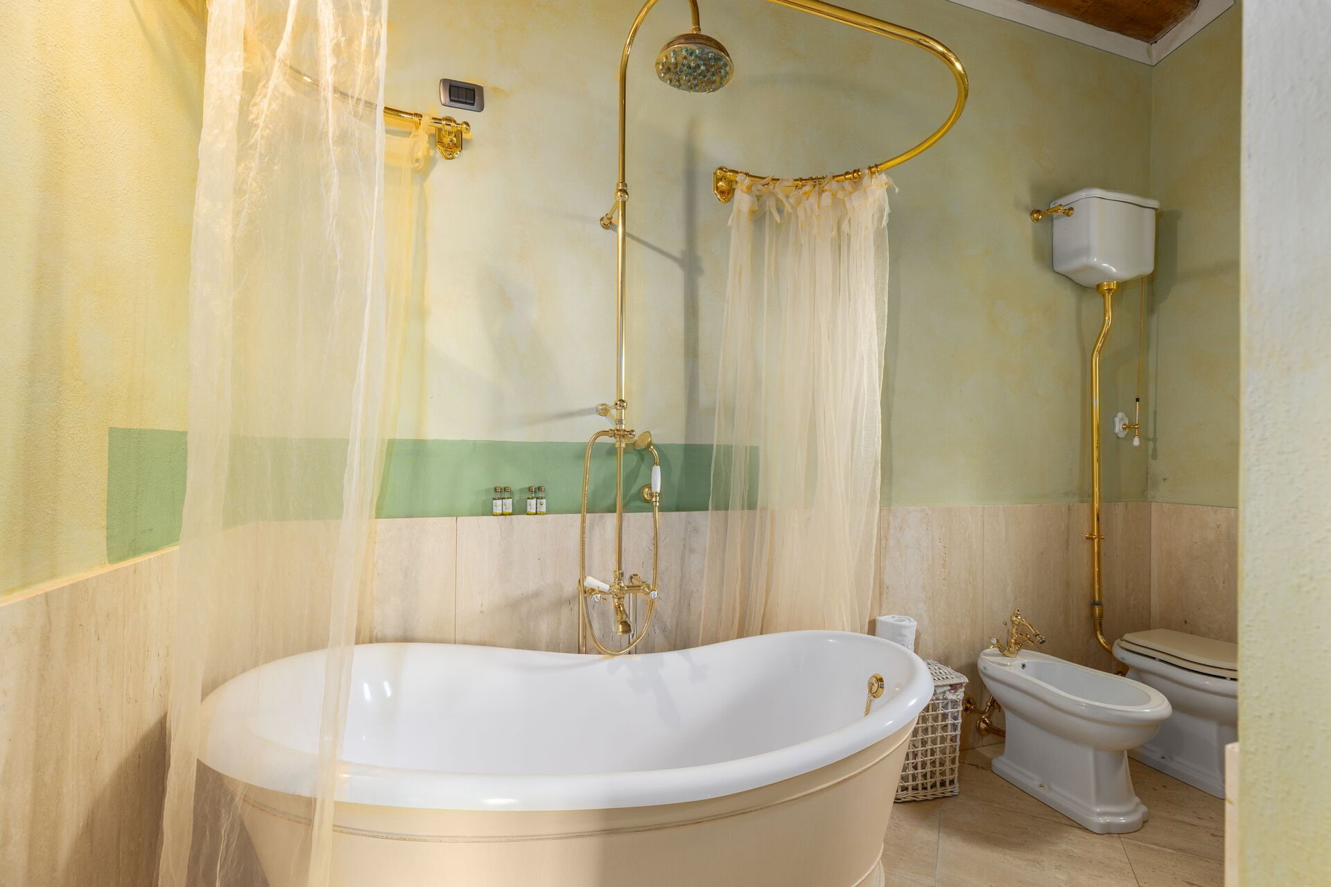 First floor: double bedroom with private bathroom with bathtub, bedroom with 2 single beds with private bathroom with shower, double bedroom (with outdoor access) with private bathroom with shower, double bedroom with private bathroom with bathtub.