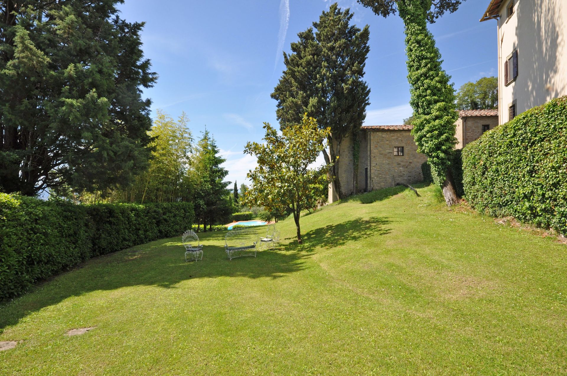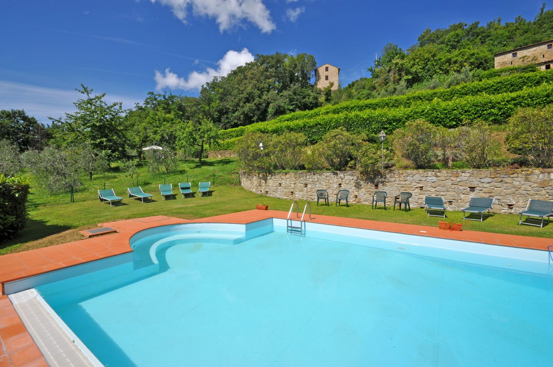 On top of the green hills, hidden at the side of a small village, lies this amazingly caracteristic villa complex. It was extremely hot so aircom was missed. The charm of our appartment/ split level house was great. The pool was french and the landscape inviting. The owners were so lovely togive uw advice as our car broke down.