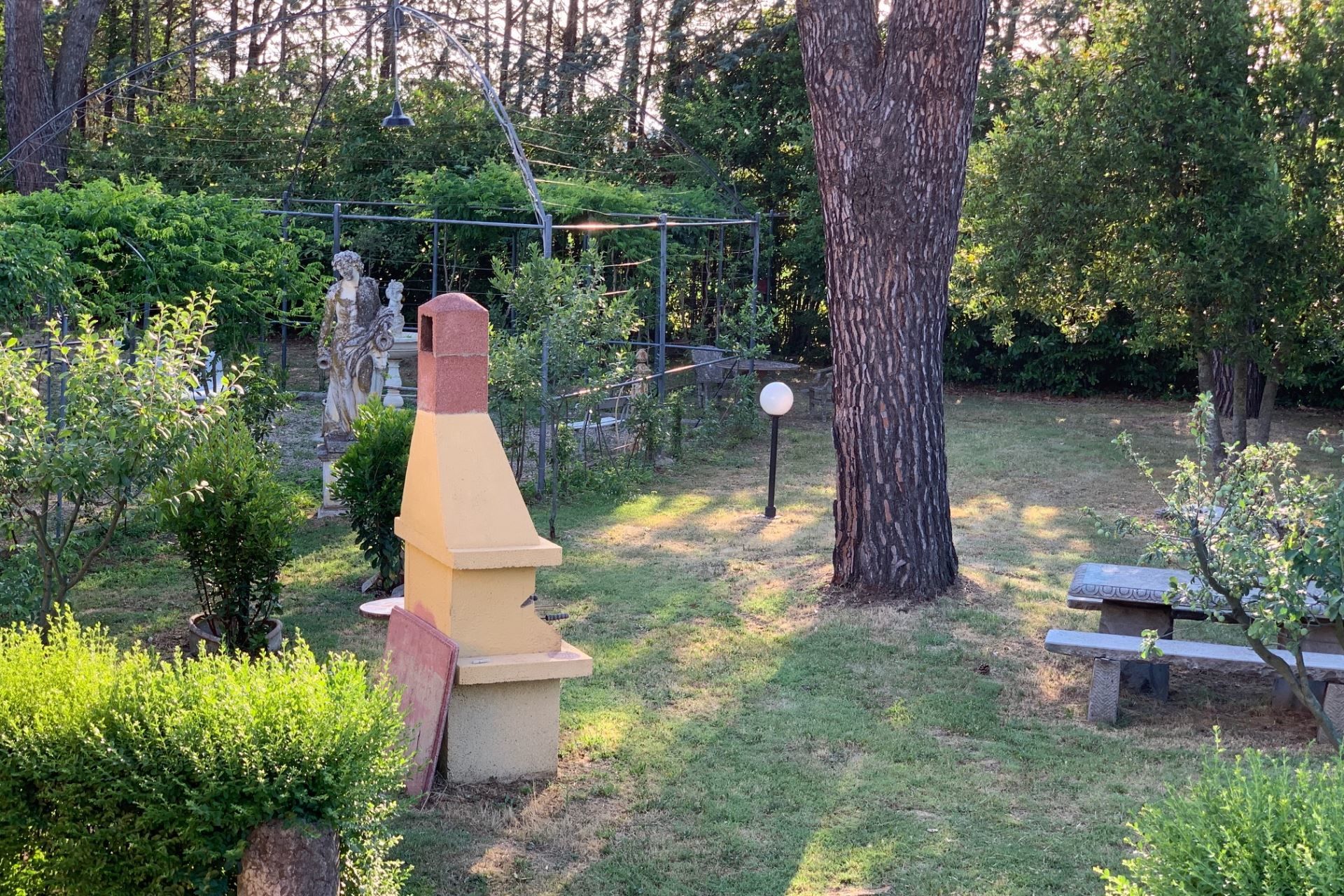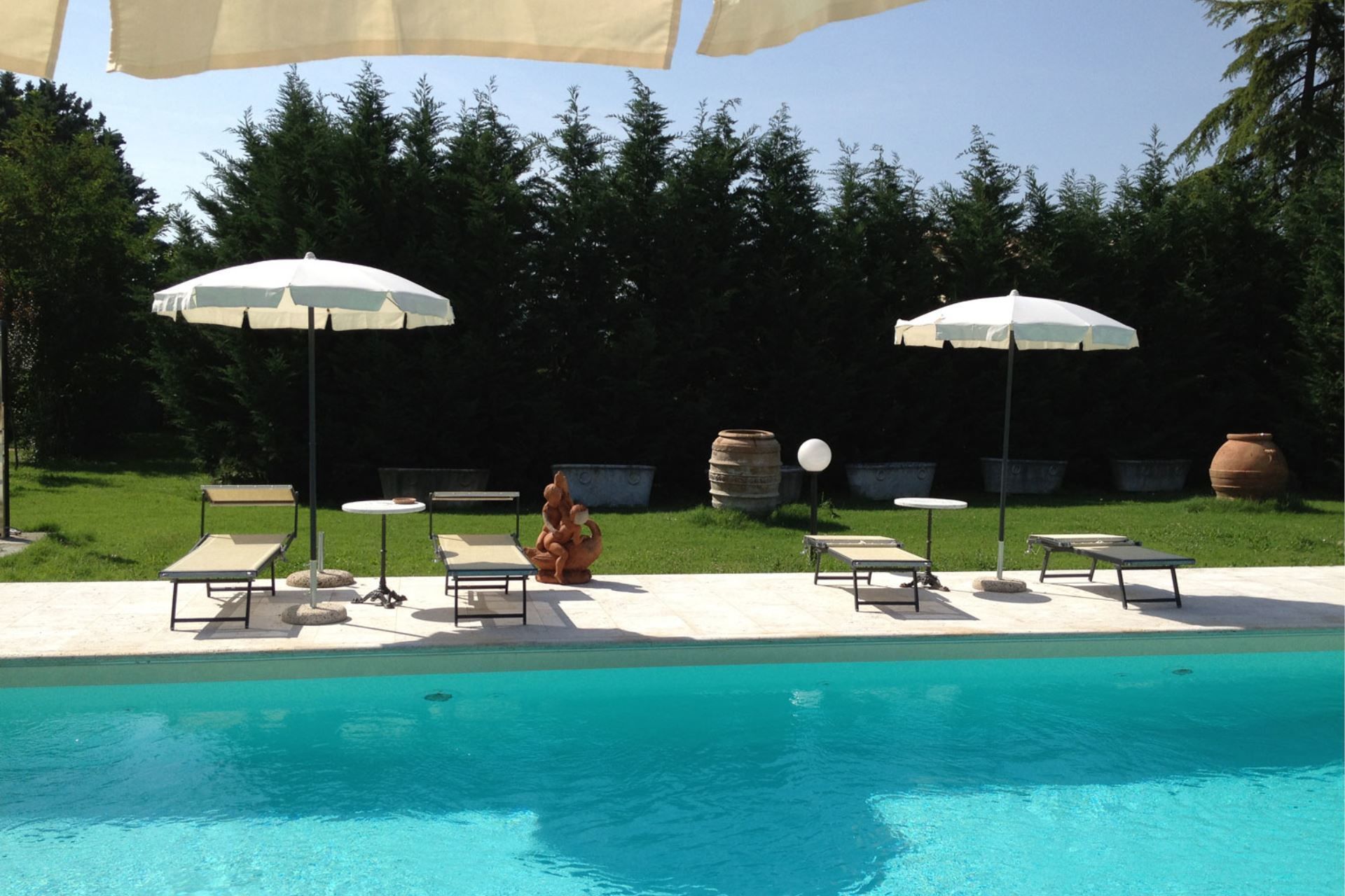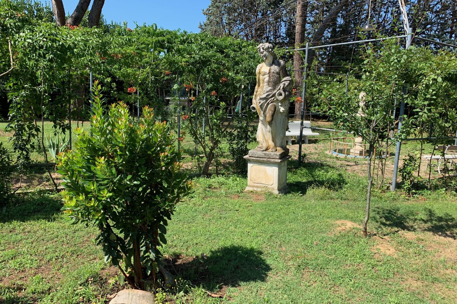The highlights of the villa, in our opinion, are certainly the splendid swimming pool with Roman staircase (size m 16x6, depth m. 1.40-2.00 - open from 27 June to 5 September) decorated with precious marble and with changing room and bathroom with shower, the characteristic pergola covered with wisteria and roses with marble fountain and wooden benches where you can spend dreamy days in the company of your book.