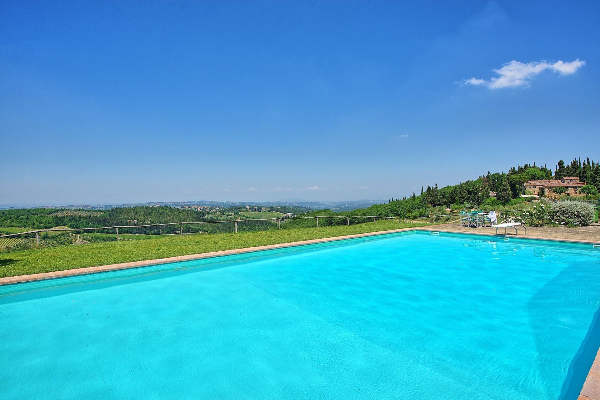 [English translation courtesy of Easy Reserve] Spacious and beautifully furnished apartment with large terrace and surrounding meadow. Large living-dining room with well-equipped kitchenette. Large bedrooms, bathrooms big enough. Uniquely located and absolutely quiet position amid of the Chianti area with view to San Gimignano. The last 2 km access road are unpaved and those people who like it paved up to the front door need to get used to - but "in front of excellence the immortal gods have put sweat..."!¿Recomendaría esta propiedad a un amigo? Sí