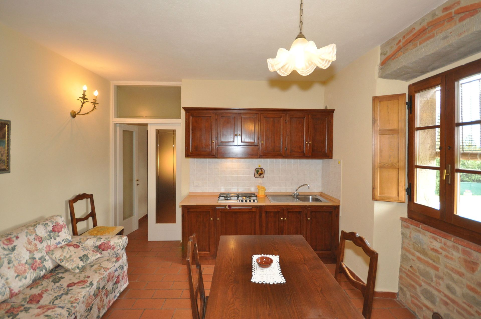 Just 2 km away lies the town of Camucia with a train station that allows for comfortable journeys to important towns within Tuscany and Umbria. A bus stop, which allows for easy reaching of the nearby towns, can be found just 100m from the property.