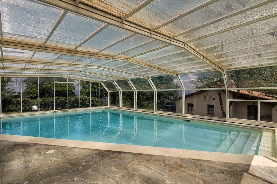 At guests' disposal: large outdoor space (about 500 m2), pool with glass covering (15 x 7 m - minimum depth 0,60 m - maximum depth 2,5 m - open from 01/03 to 30/10) reserved for guests' exclusive use, equipped terrace with beautiful view of the surrounding countryside, barbecue. Parking within the grounds.