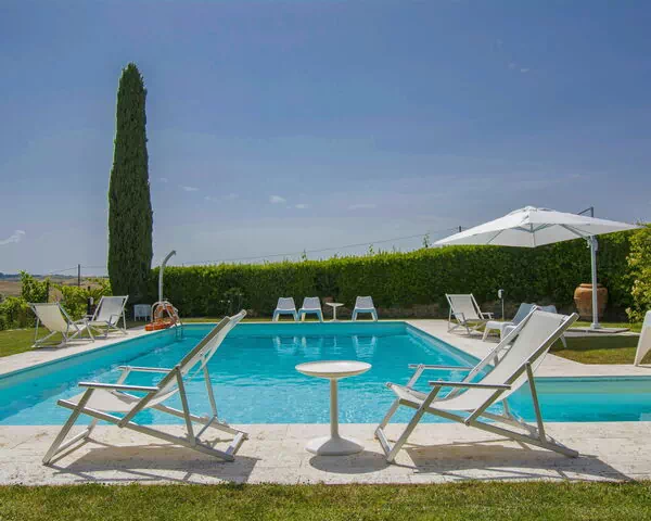 El jardín vallado se extiende por toda la finca, ofreciendo a los huéspedes amplio espacio para relajarse y disfrutar del paisaje toscano en completa privacidad. La piscina de gran tamaño mide 12 x 6 metros con una profundidad de 145 a 300 centímetros y está disponible de forma estacional del 1 de mayo al 31 de octubre. Una ducha exterior se encuentra ubicada cerca de la piscina para usar después de nadar. Las áreas de patio y terraza están amuebladas con mobiliario de jardín, proporcionando espacios cómodos para comer al aire libre, tomar el sol o disfrutar de las vistas circundantes. Hay una barbacoa disponible para los huéspedes que deseen disfrutar de comidas al aire libre. La propiedad también cuenta con una pista de tenis y un aparcamiento en el lugar.