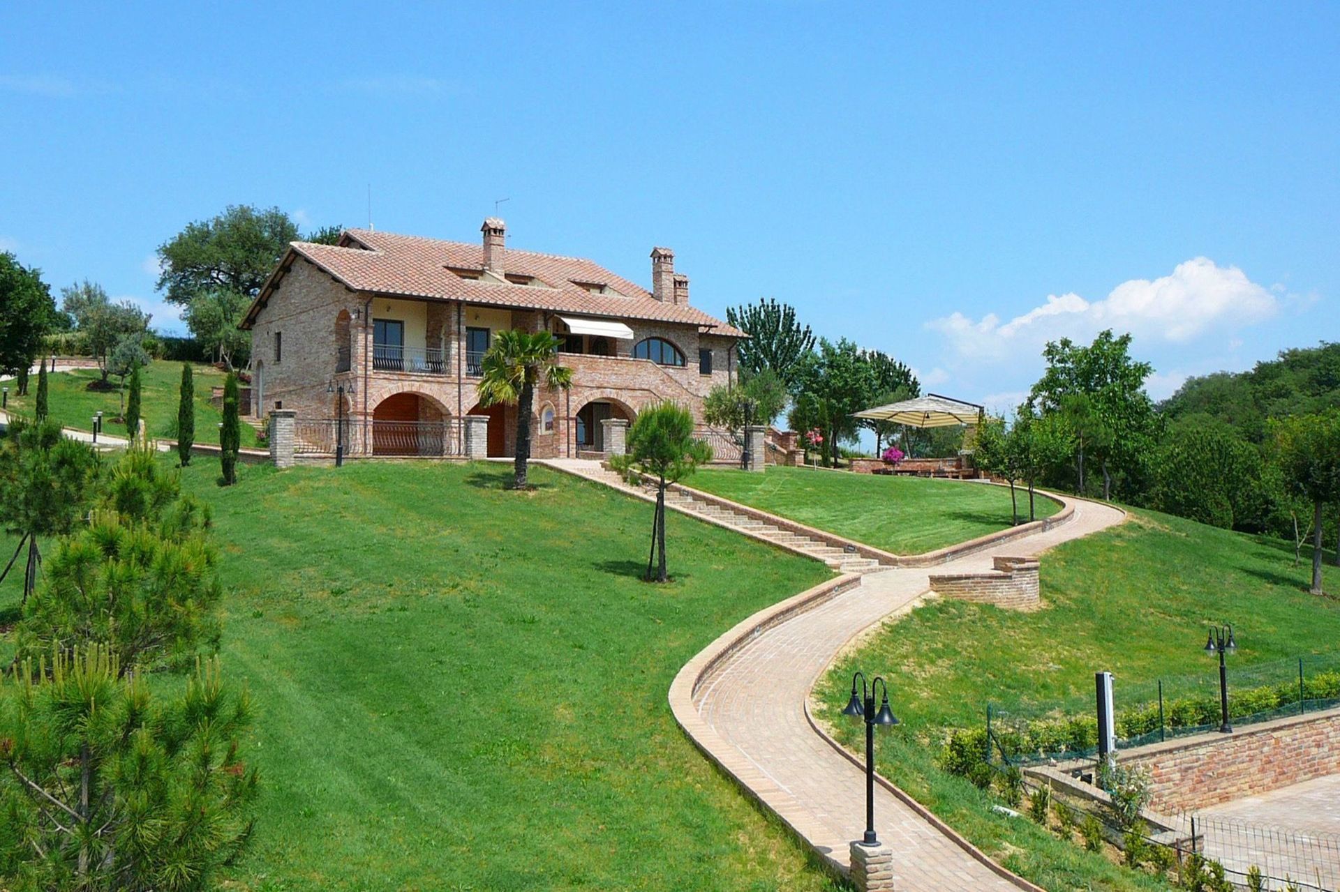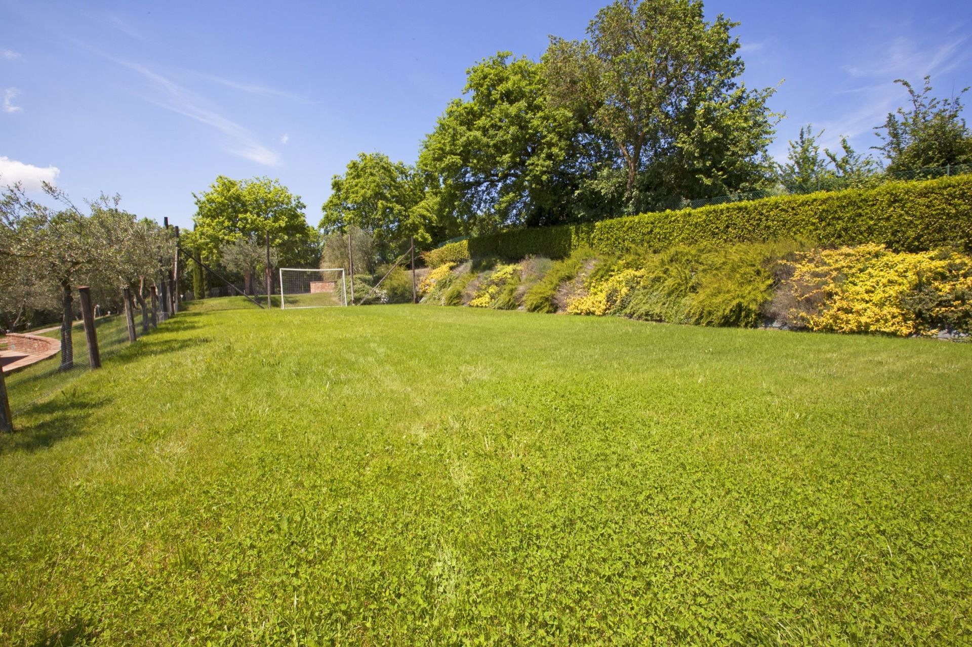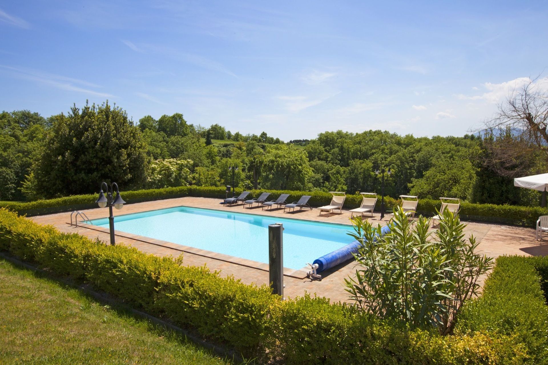 Available to guests: large, furnished outdoor areas with sun umbrellas, tables, chairs and barbecue, lawn with soccer goals, large, panoramic private pool (12 x 6 m); the pool is heated by solar panels allowing nice water temperatures outside hot months too. A bowling green is available near the pool.