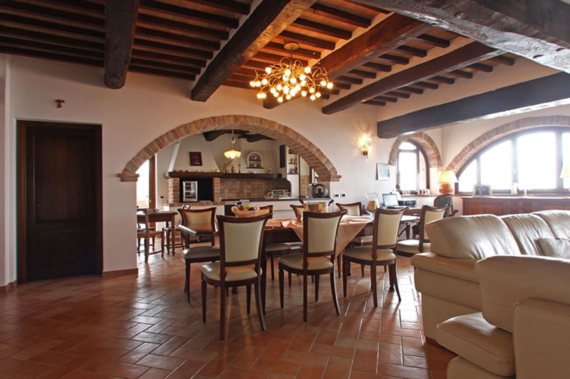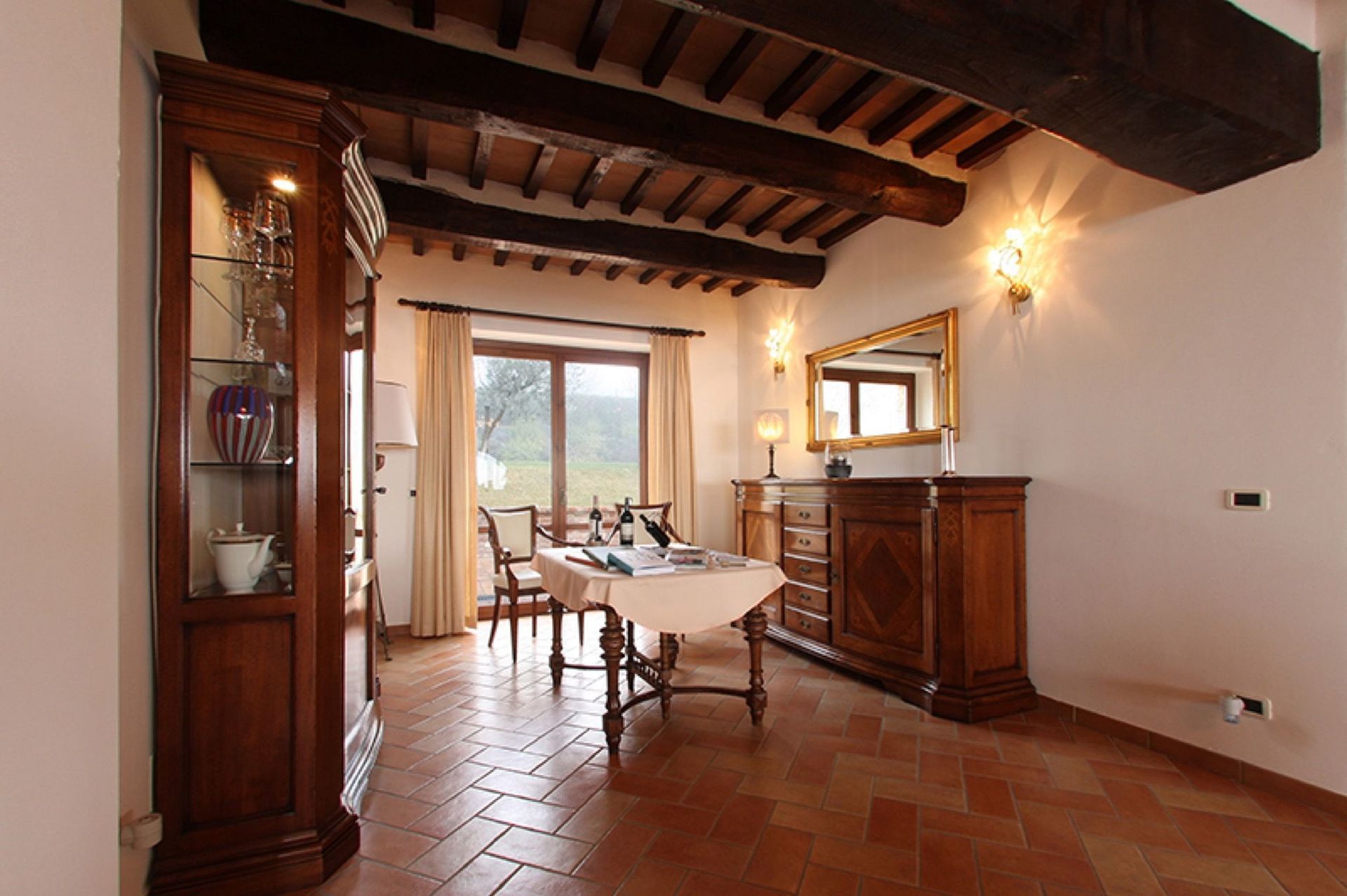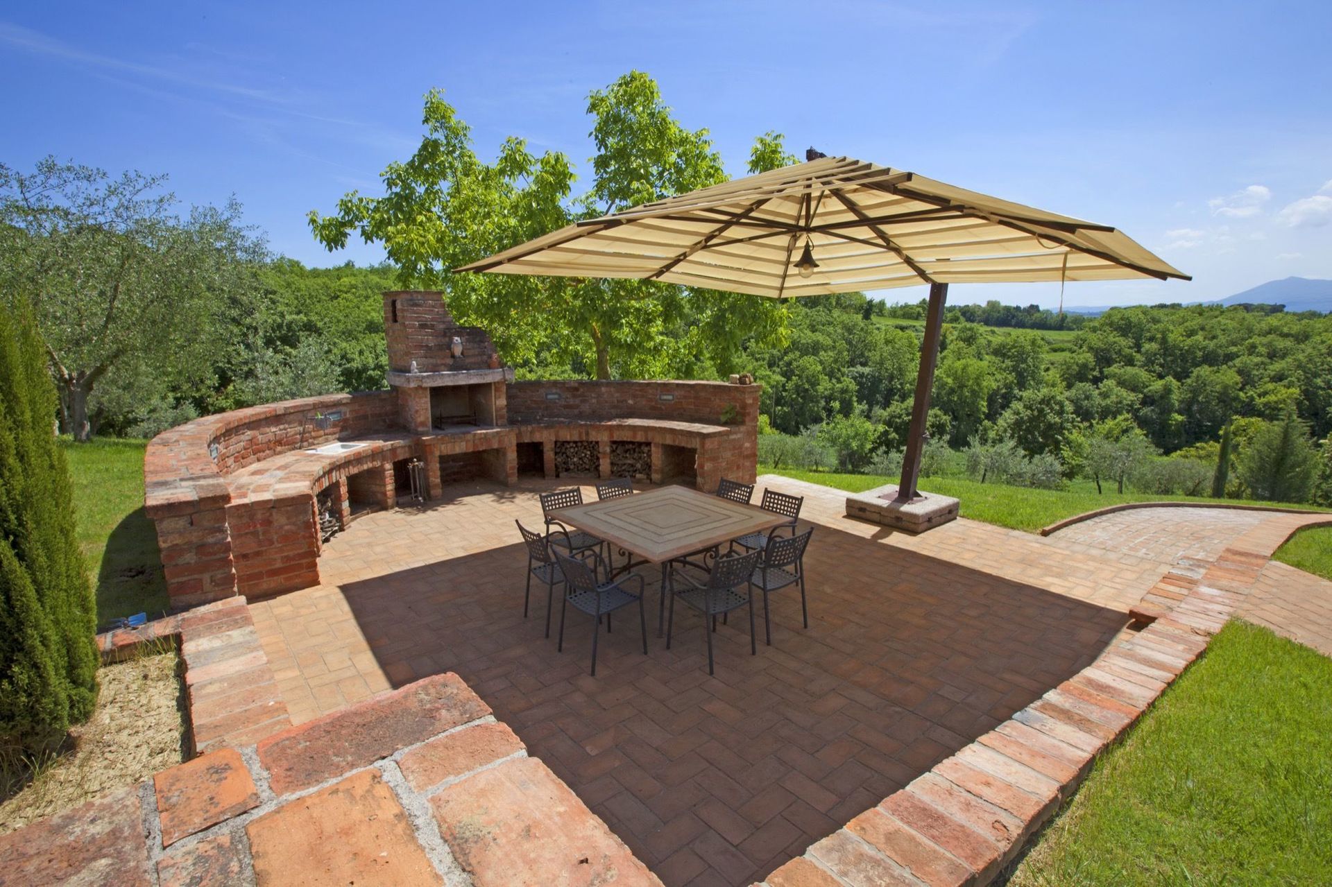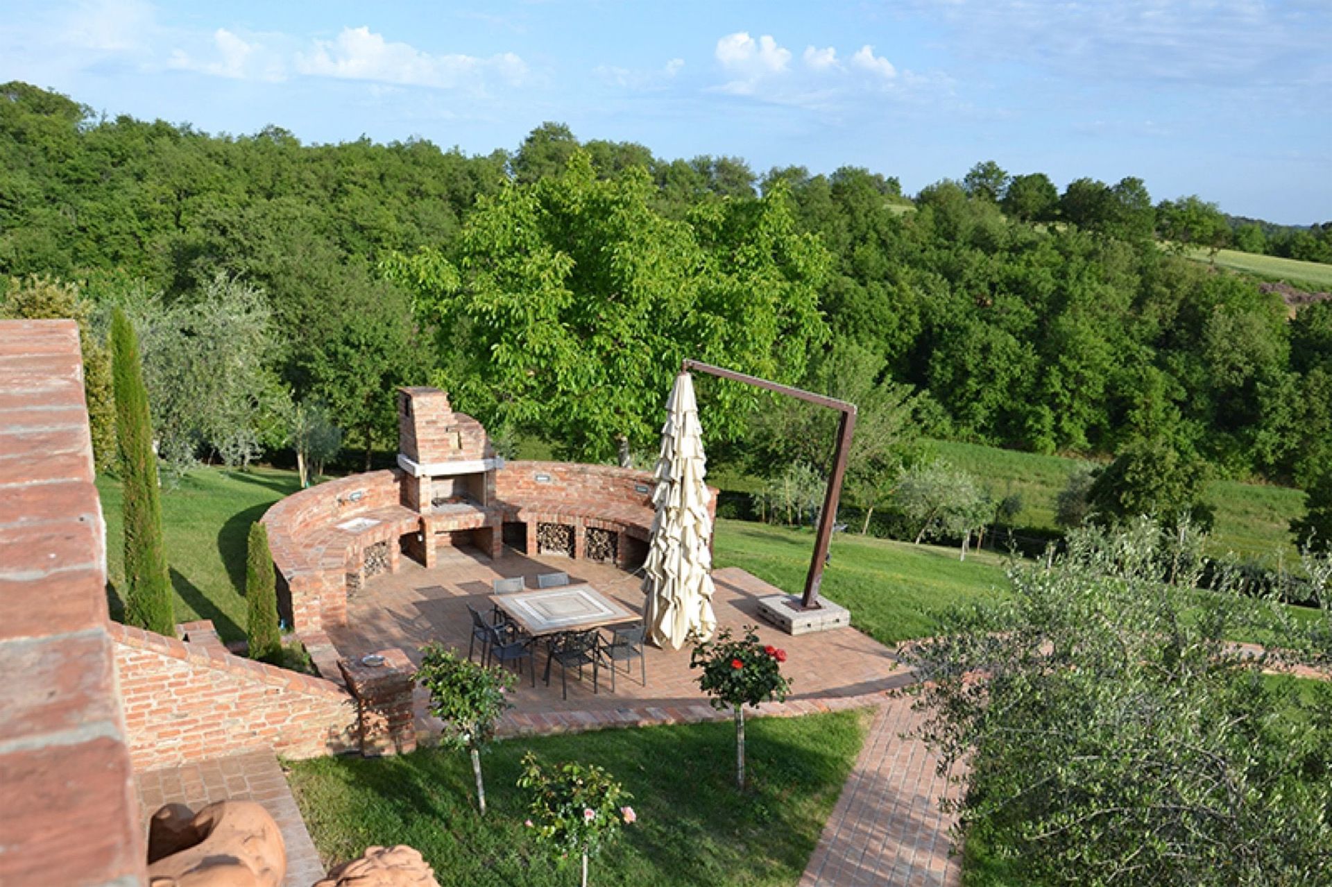 Available to guests: large, furnished outdoor areas with sun umbrellas, tables, chairs and barbecue, lawn with soccer goals, large, panoramic private pool (12 x 6 m); the pool is heated by solar panels allowing nice water temperatures outside hot months too. A bowling green is available near the pool.