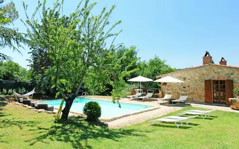 Casale Verciano è una casa de vacaciones independiente ubicada en la campiña de Parrano, Umbría, Italia. La propiedad se sitúa aproximadamente a 2 km del centro de Parrano en un entorno rural aislado que invita al descanso completo. La casa ocupa una finca privada completamente vallada de 5.000 m² rodeada de árboles. El rasgo distintivo de la propiedad es su piscina privada de 10 x 5 metros con una profundidad de 140 cm, disponible del 6 de mayo al 30 de septiembre.